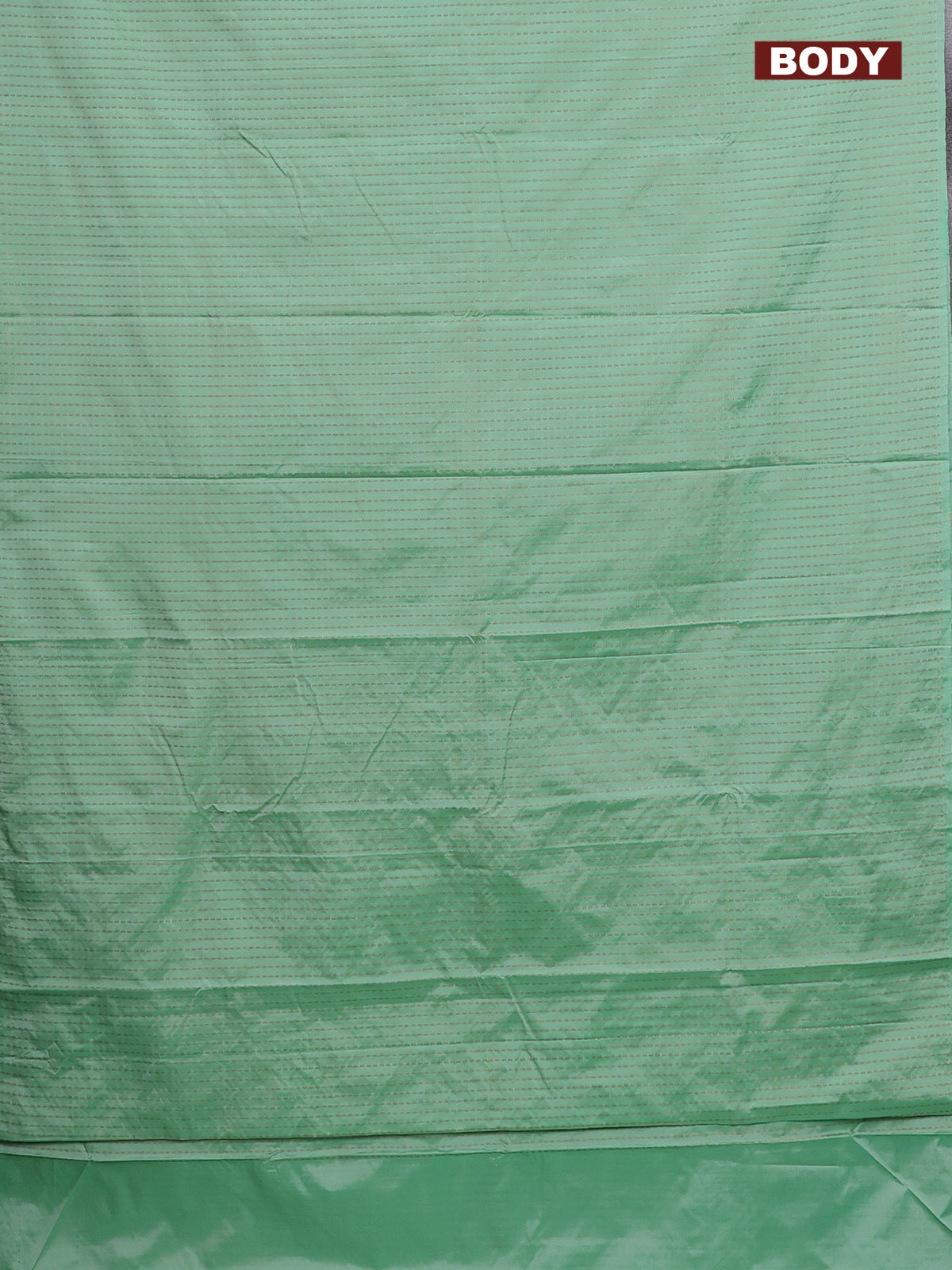 Arani semi silk saree pastel green with allover copper zari weaves in borderless style