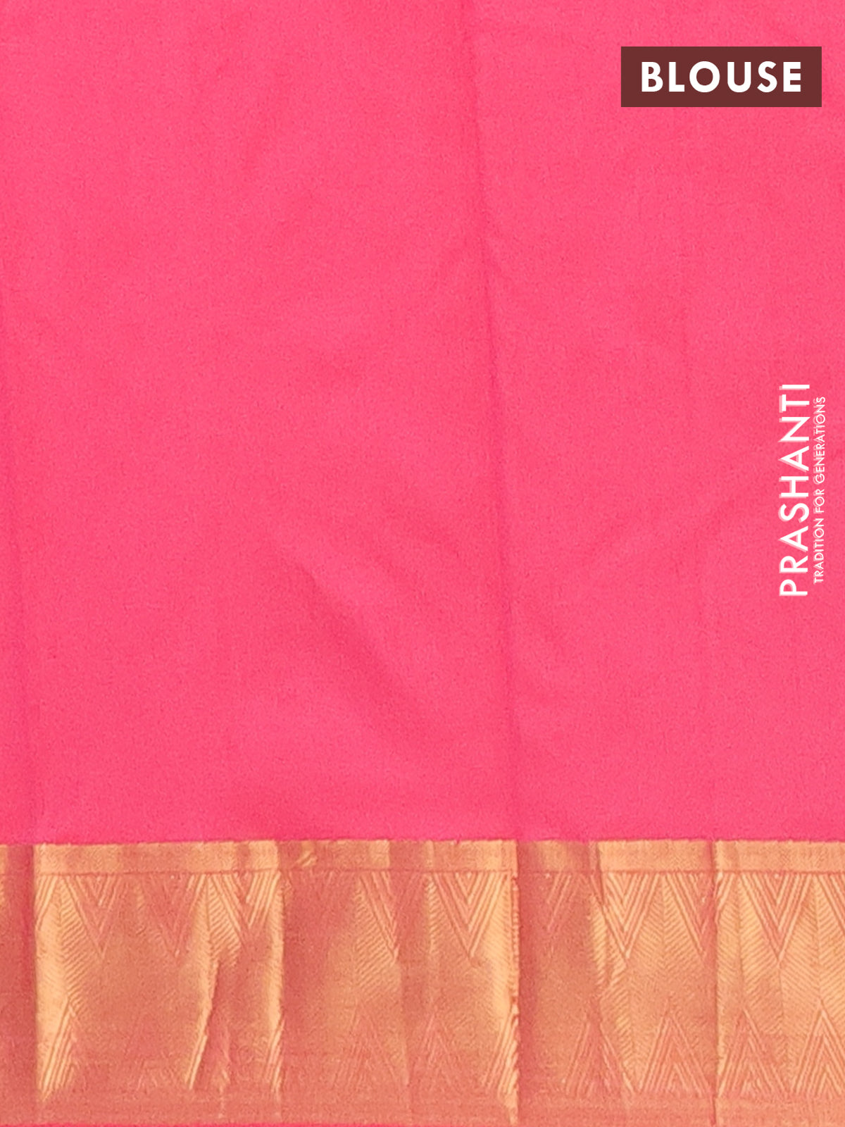 Arani semi silk saree peach pink with zari woven thilak buttas and zari woven border