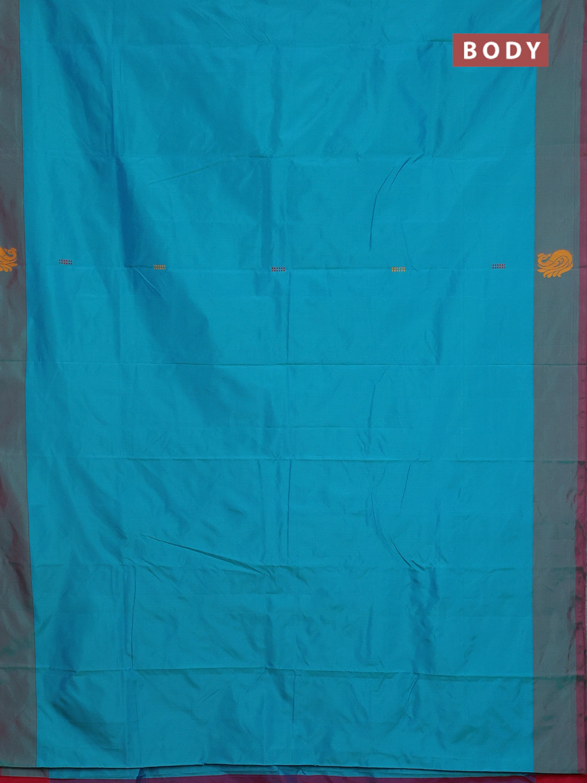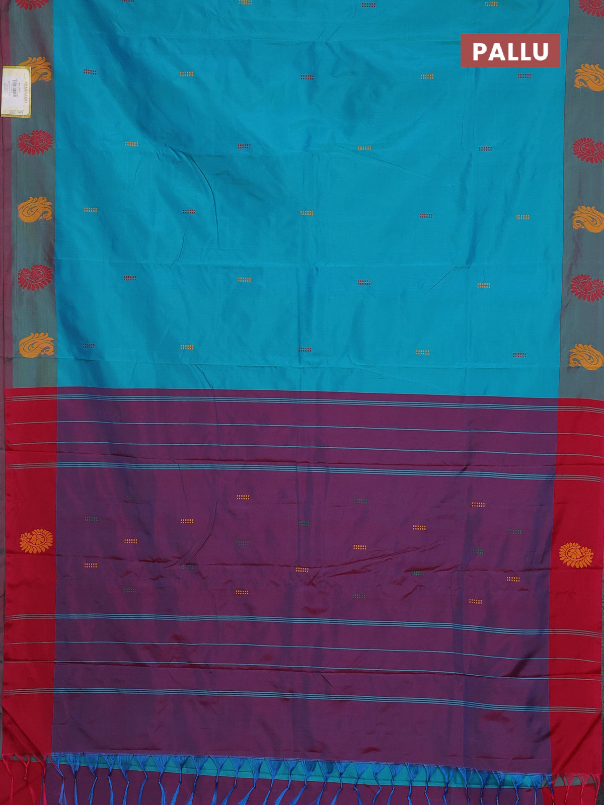 Arani semi silk saree teal blue shade and pink with thread woven buttas and thread woven butta border