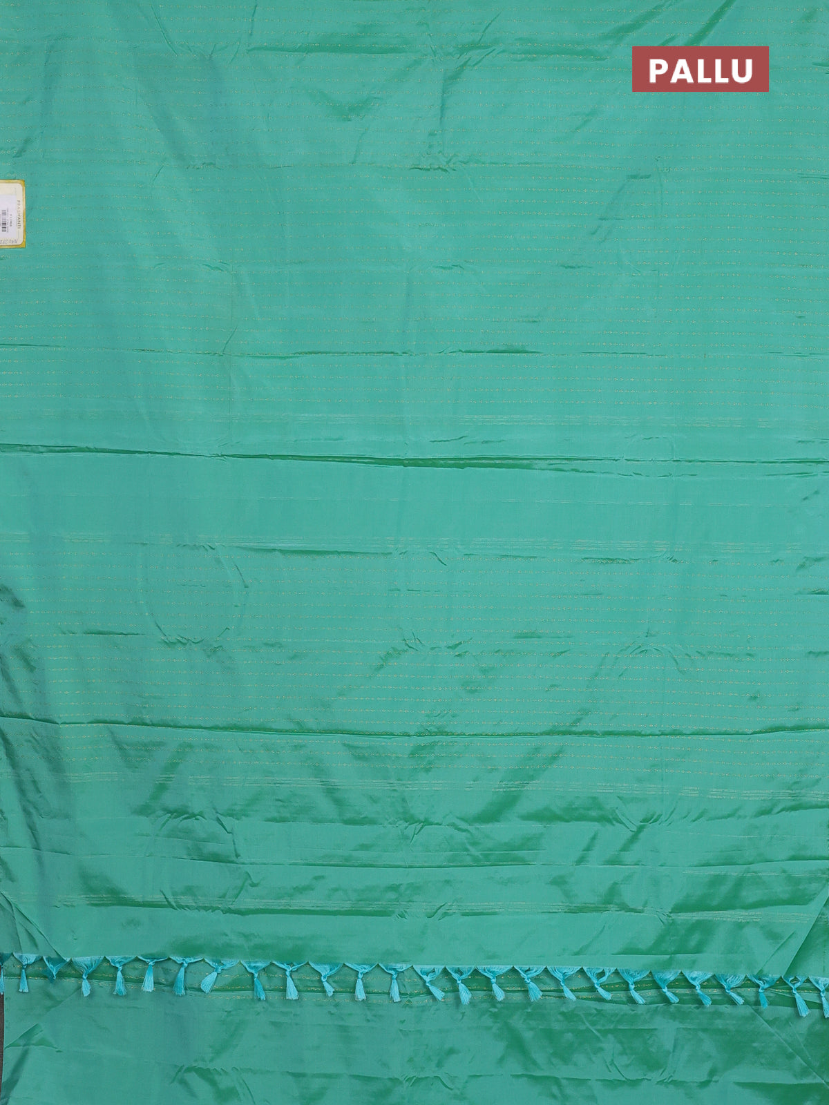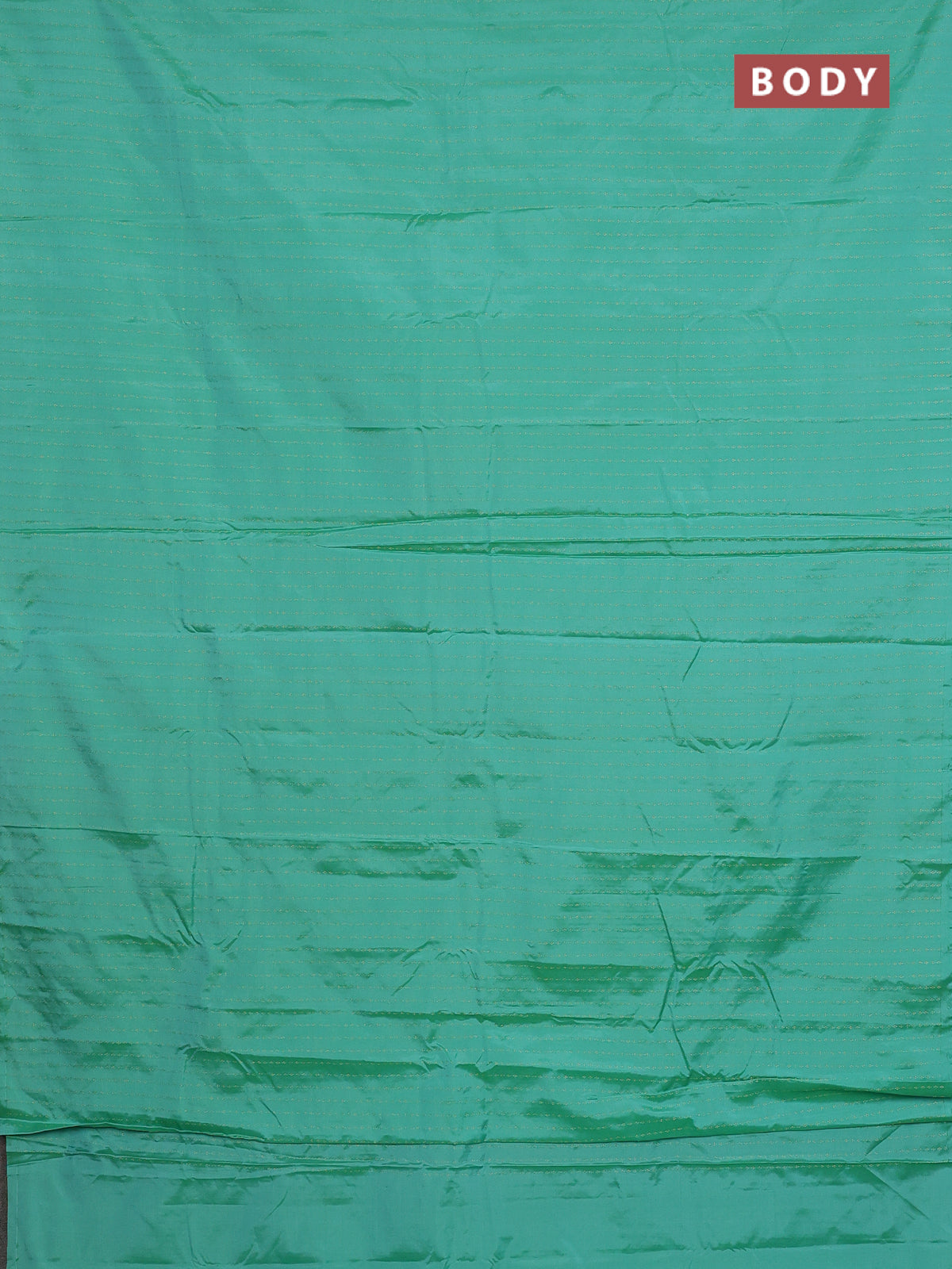 Arani semi silk saree teal green with allover zari weaves in borderless style