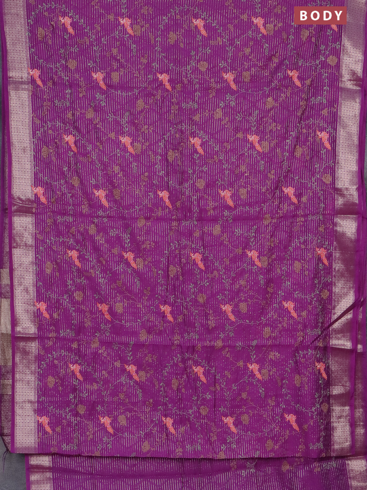 Assam silk saree purple with allover zari weaves & embroidery work and zari woven border