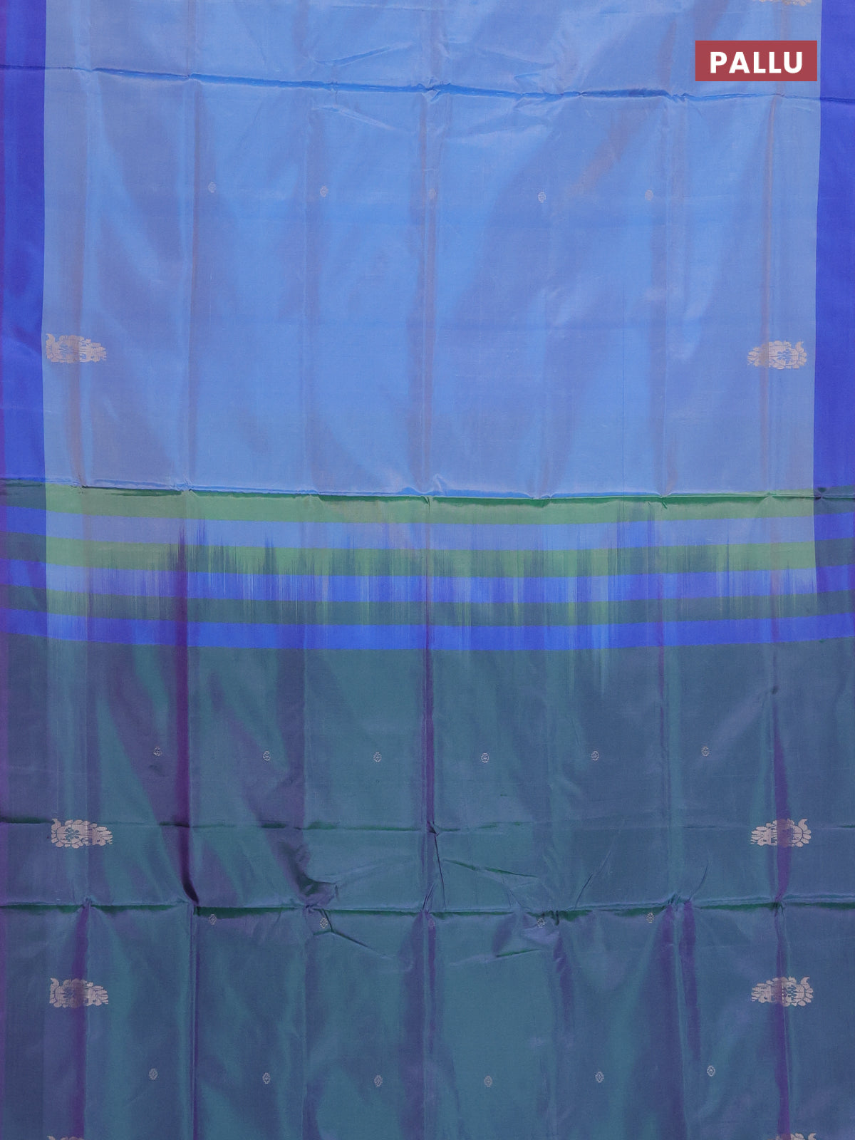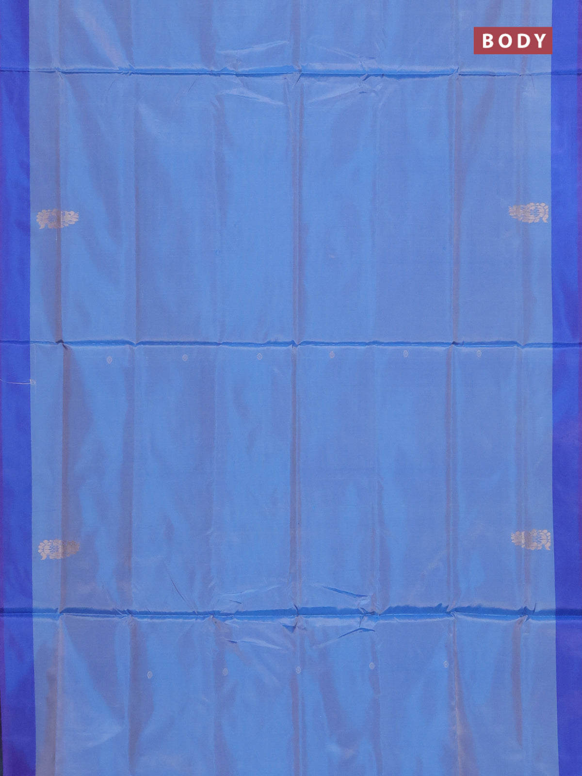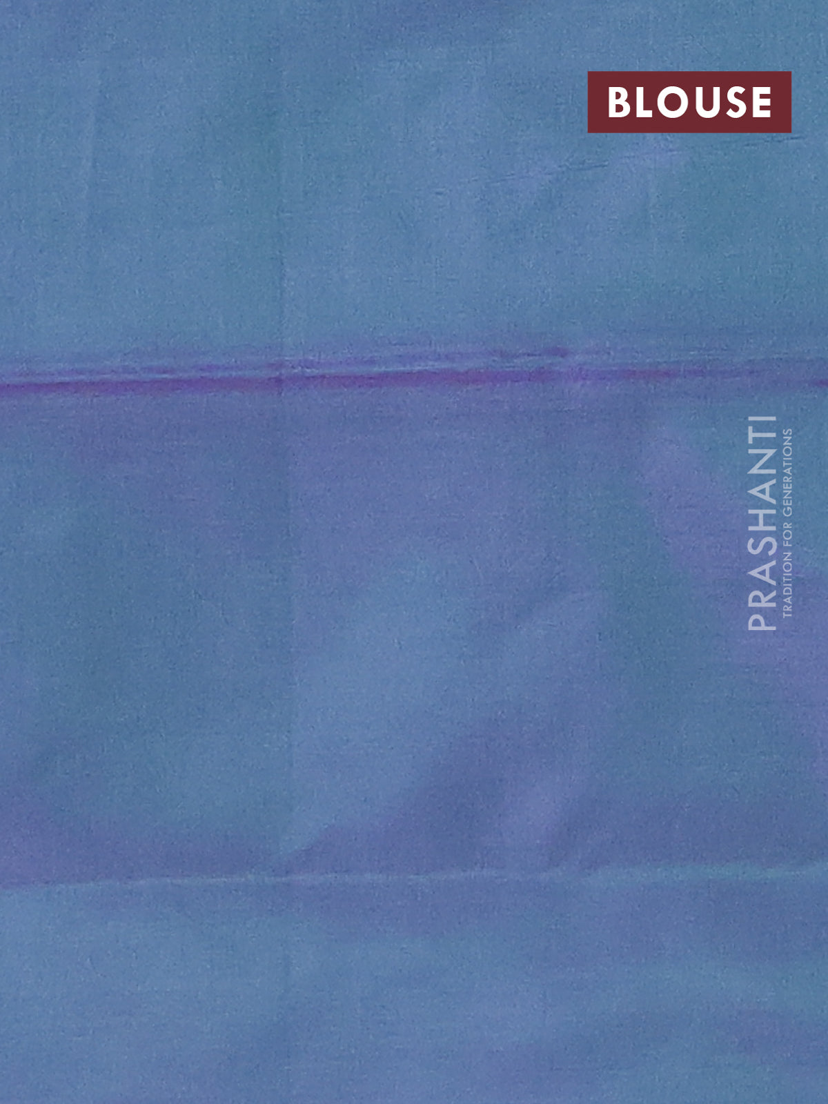 Banana pith saree blue shade and dual shade of greenish violet with thread woven buttas and contrast border