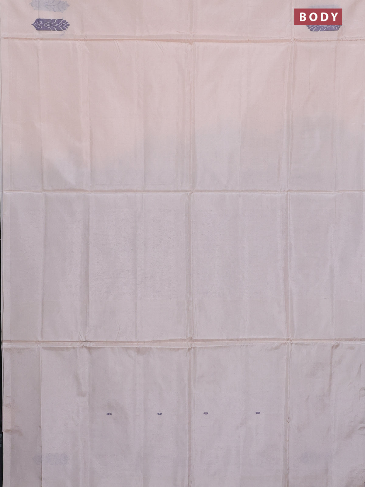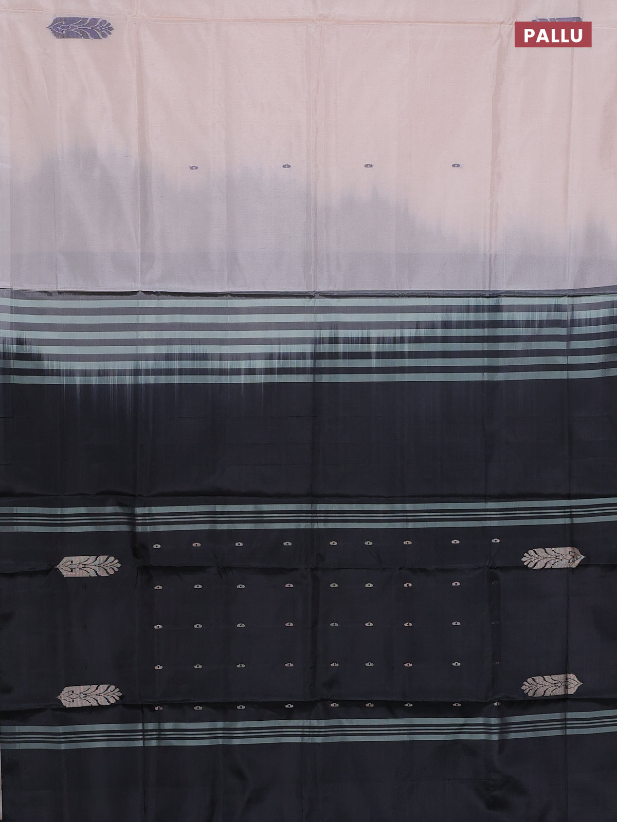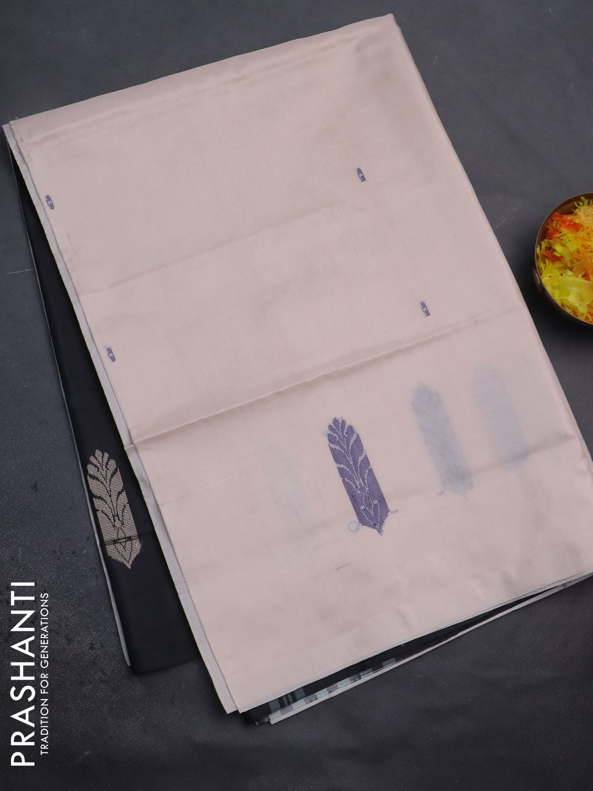 Banana pith saree cream and black with thread woven buttas in borderless style