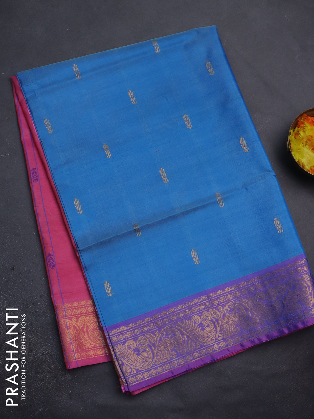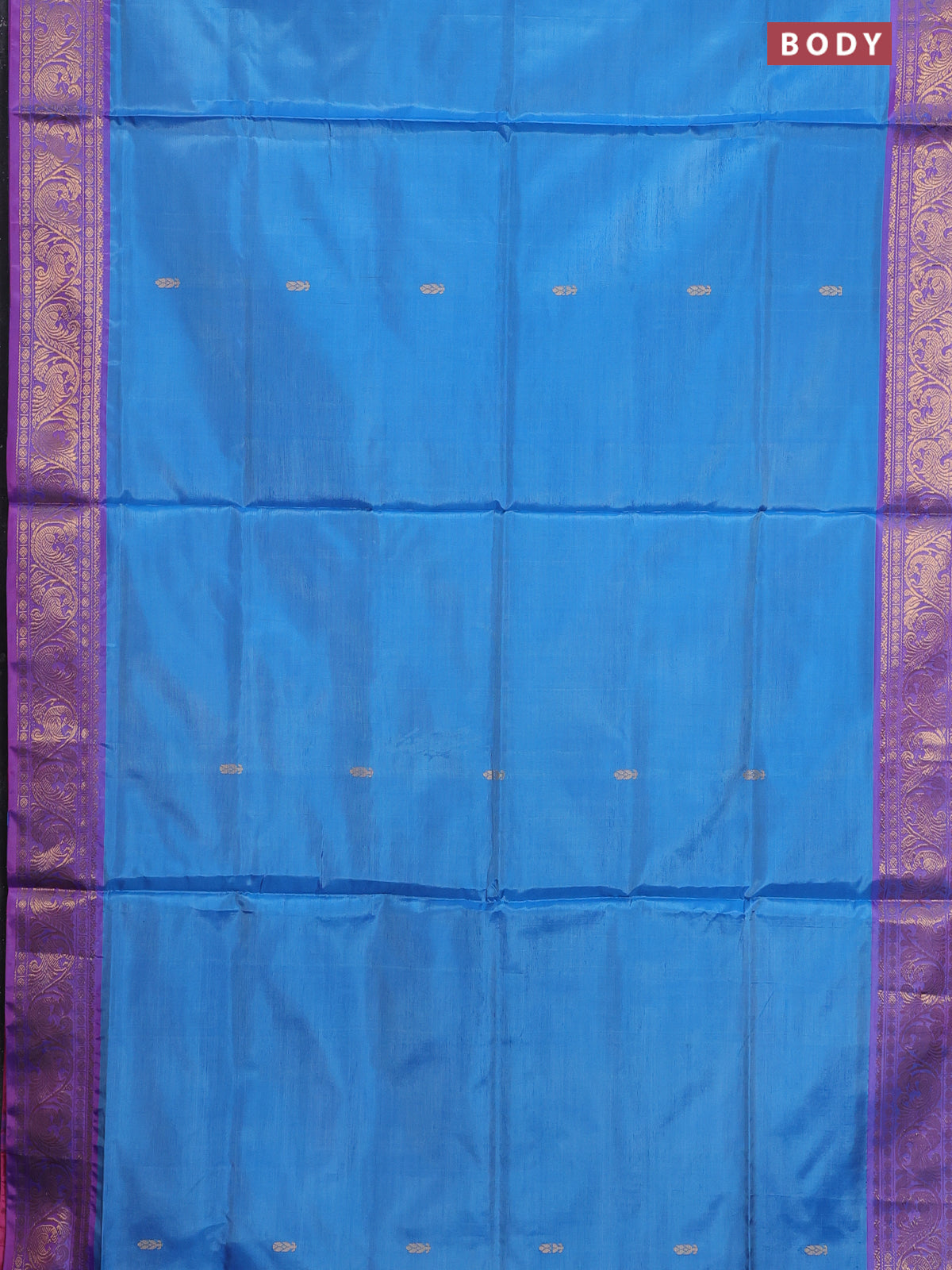 Banana pith saree dual shade of blue and pink with thread woven buttas and zari woven border