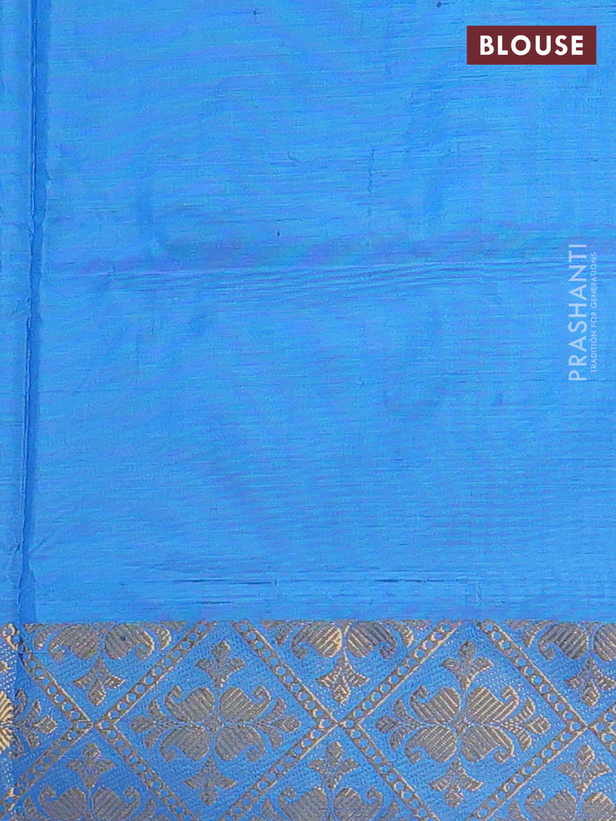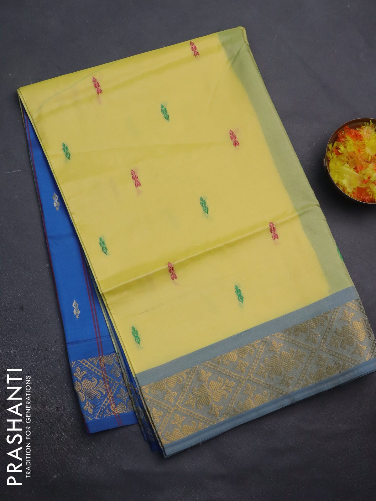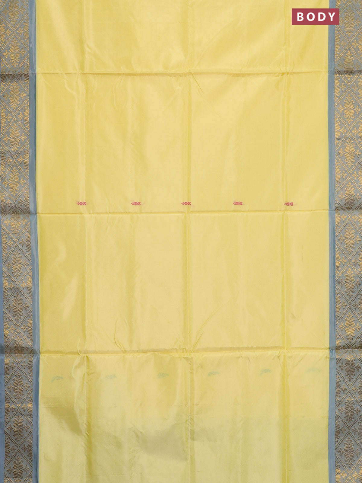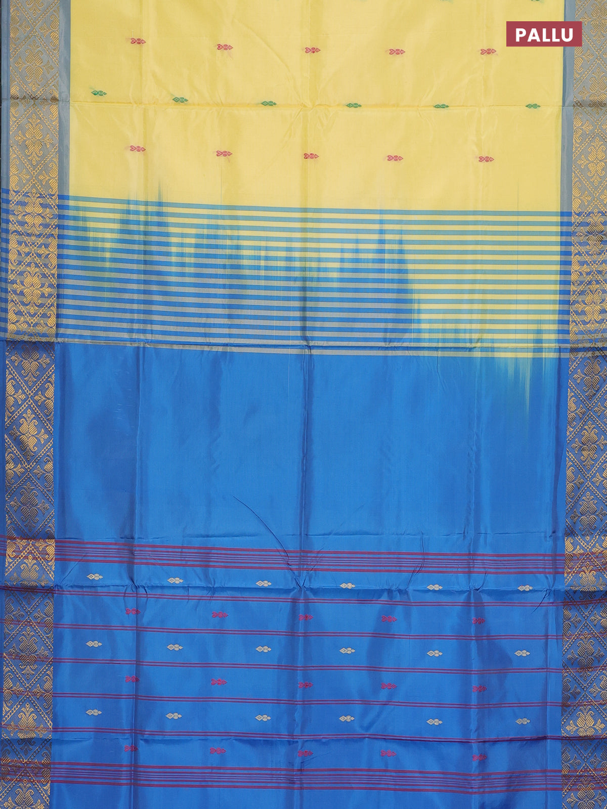 Banana pith saree pale yellow and cs blue with thread woven buttas and zari woven border