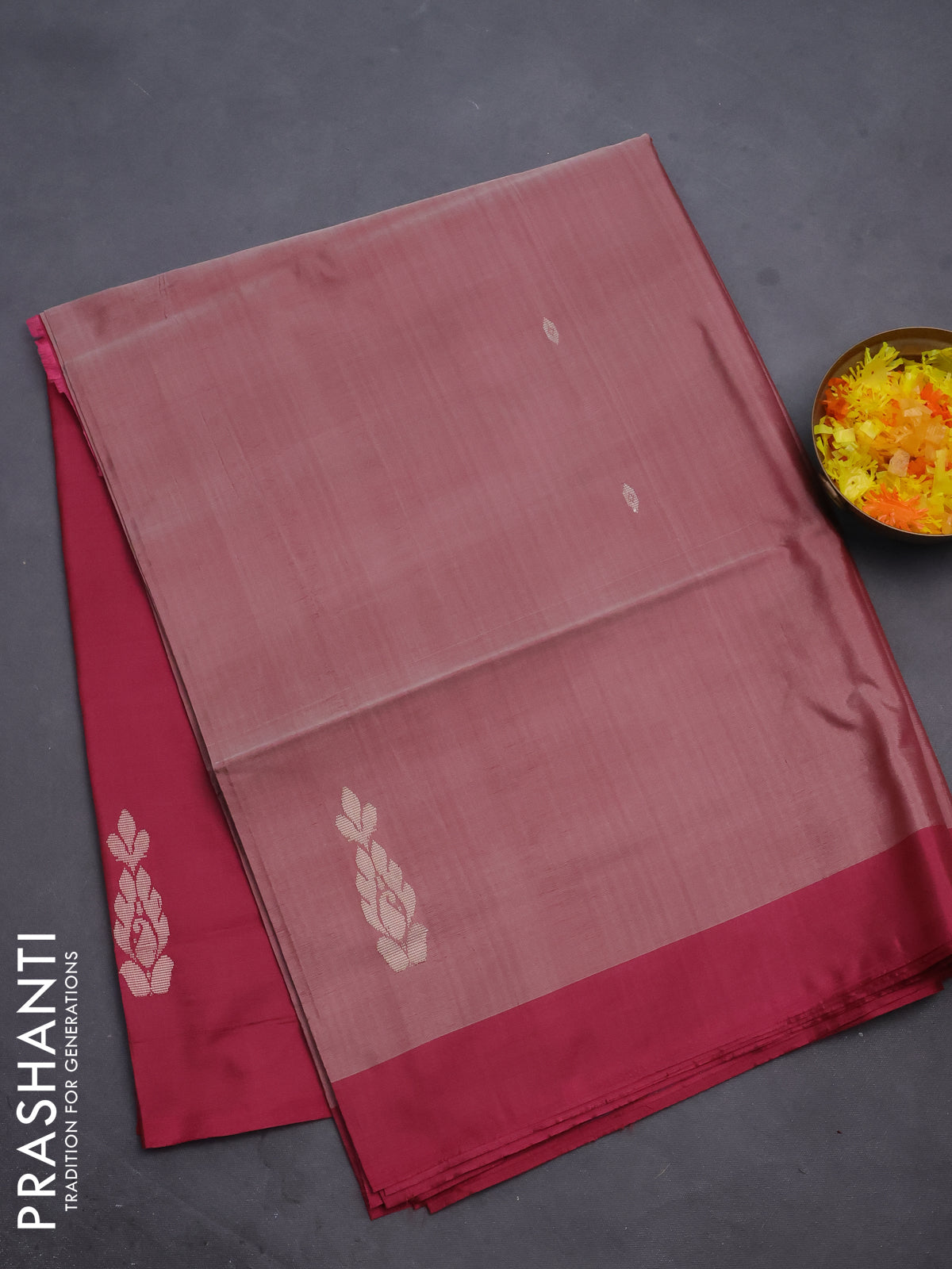 Banana pith saree pastel maroon and dark pink with thread woven buttas and contrast border
