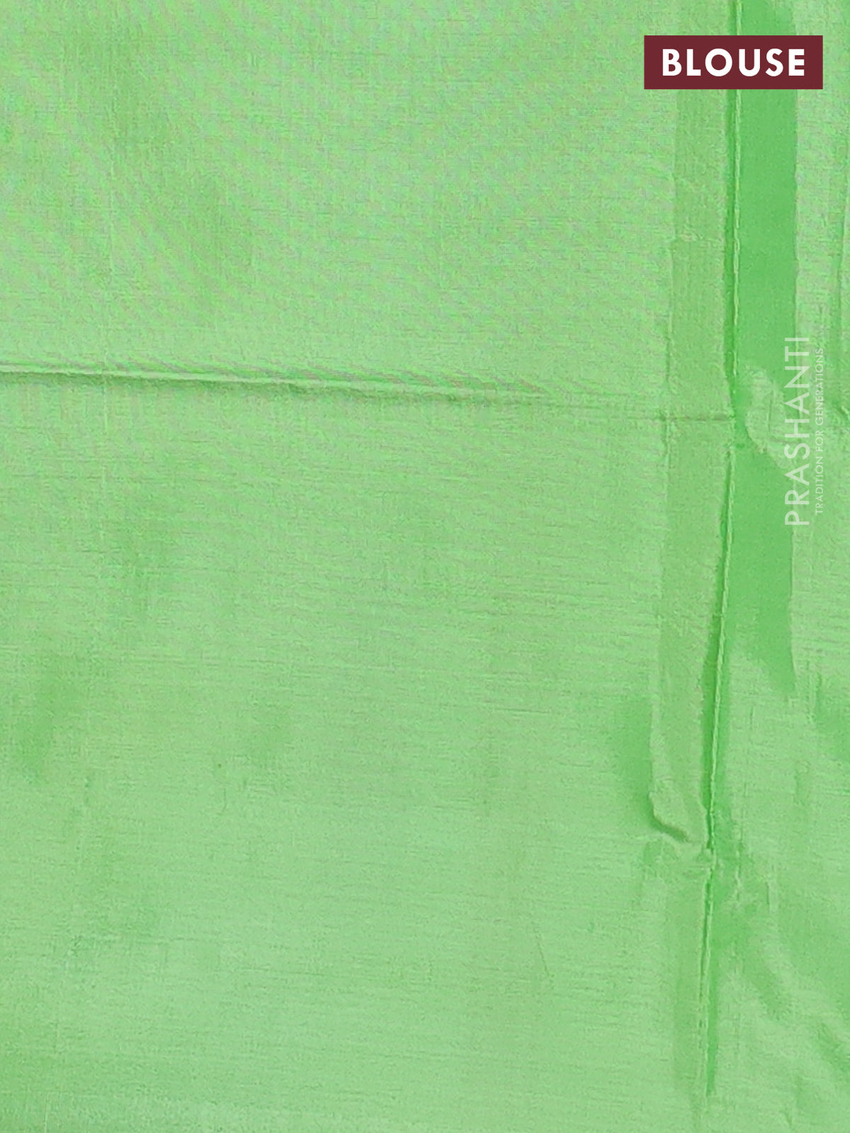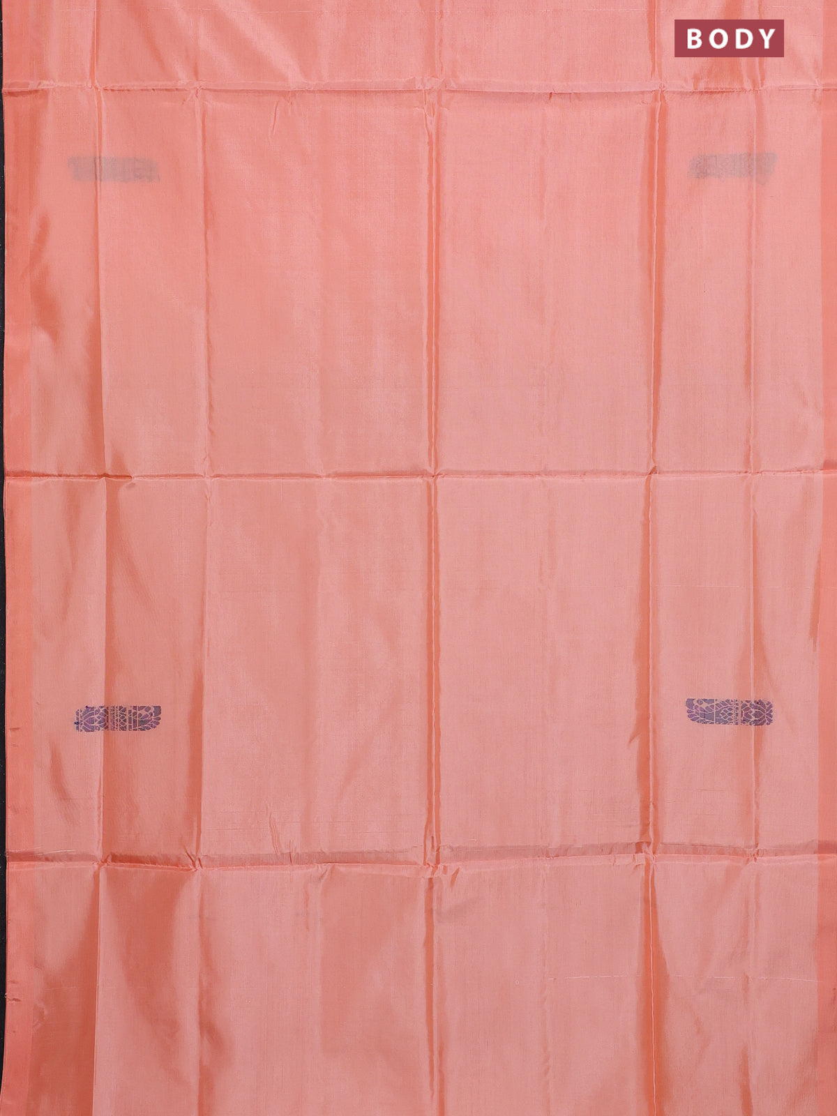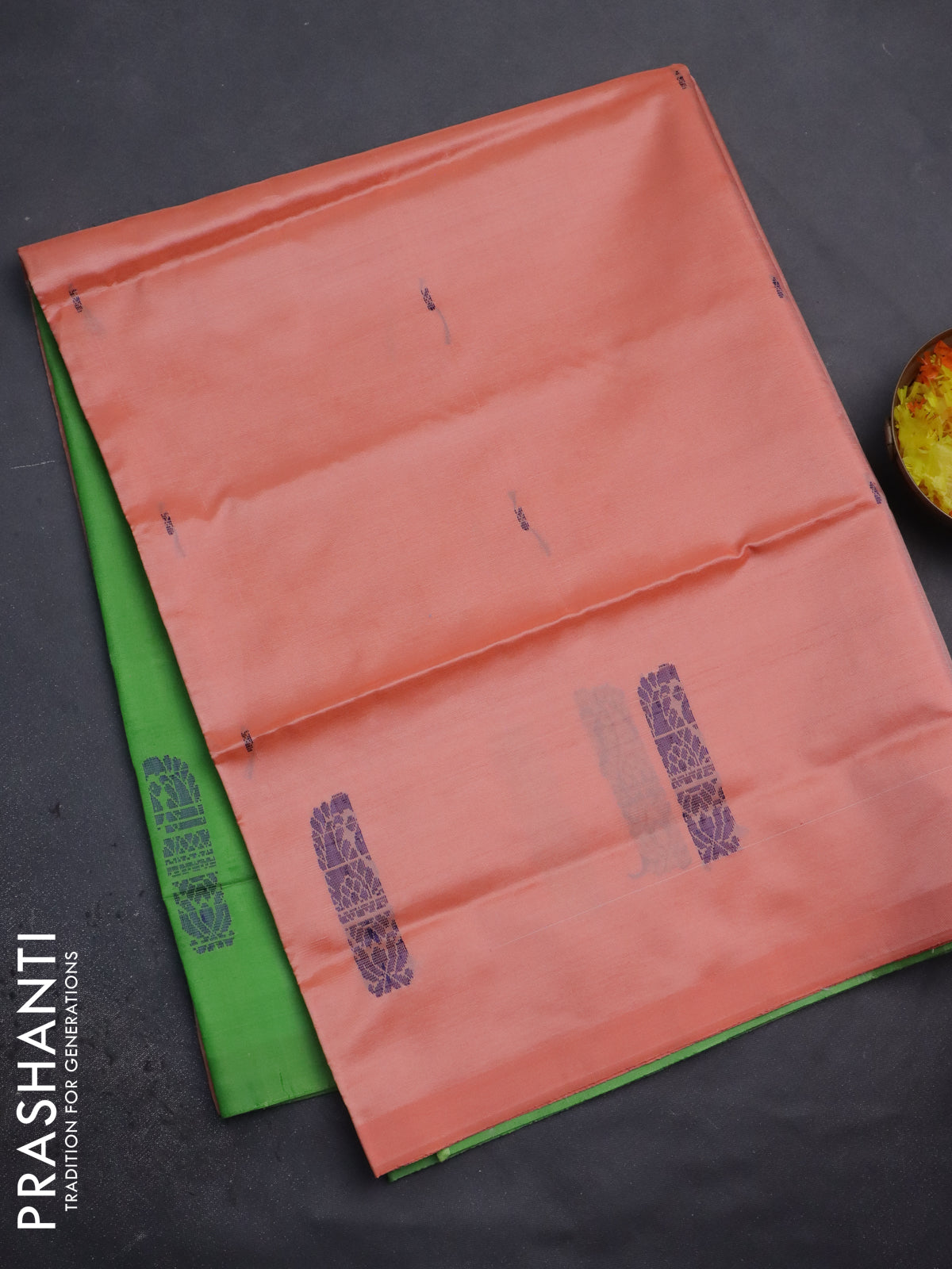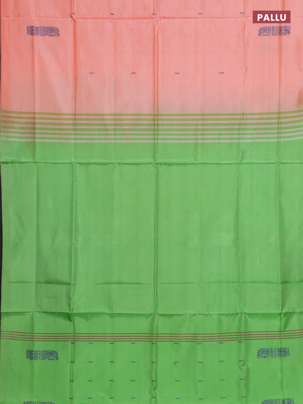 Banana pith saree peach orange and light green with thread woven buttas in borderless style
