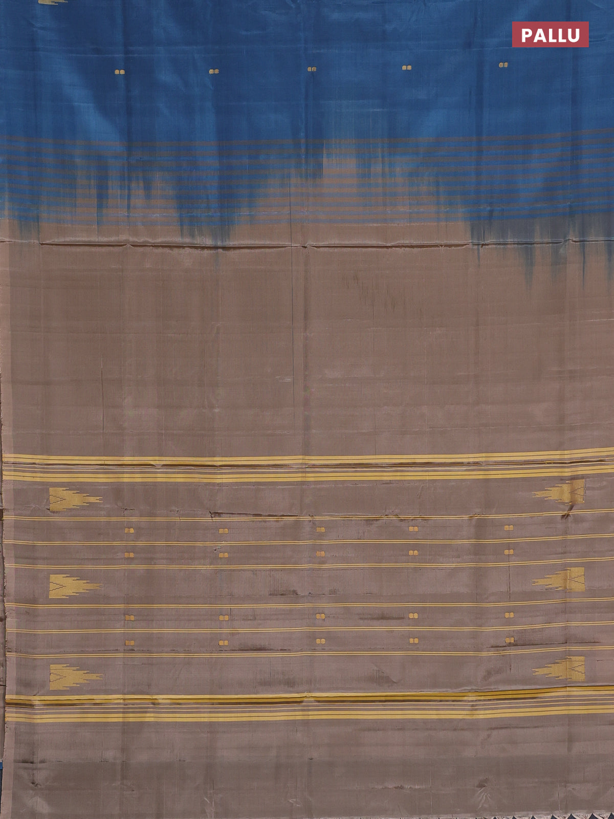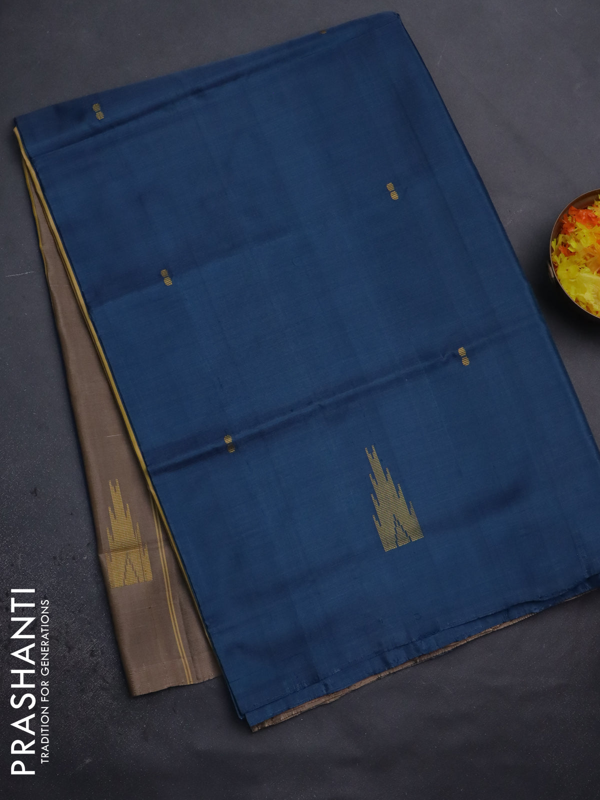 Banana pith saree peacock blue and beige with thread woven buttas in borderless style