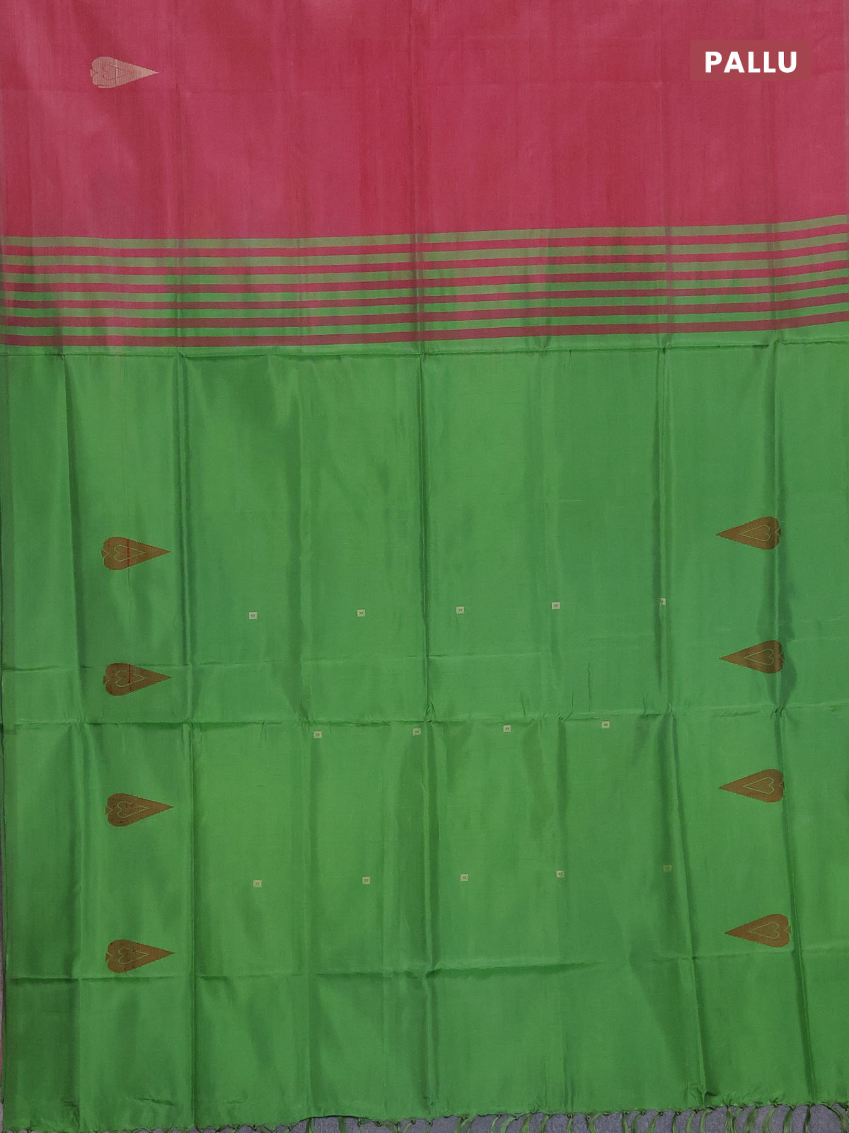 Banana pith saree pink shade and green with thread woven buttas in borderless style