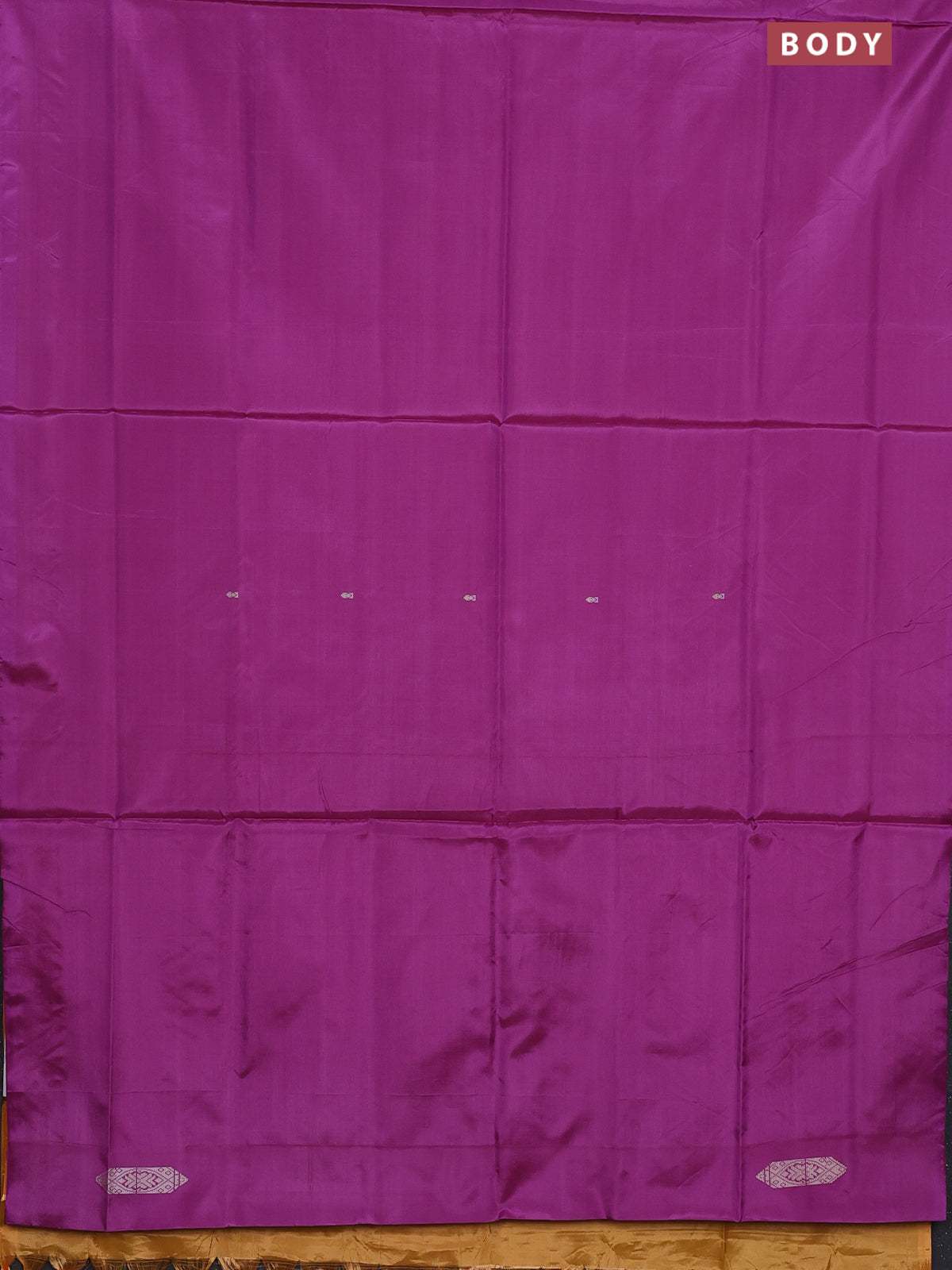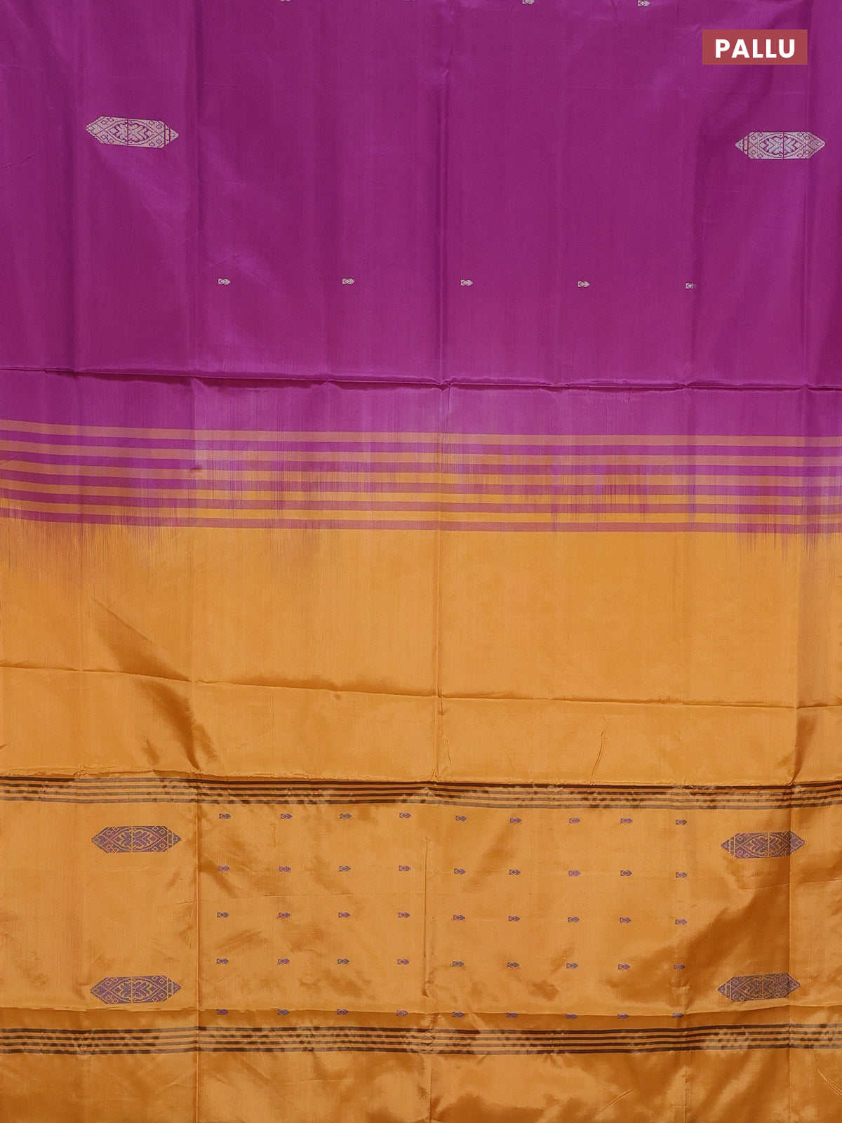 Banana pith saree purple and mango yellow with thread woven buttas in borderless style