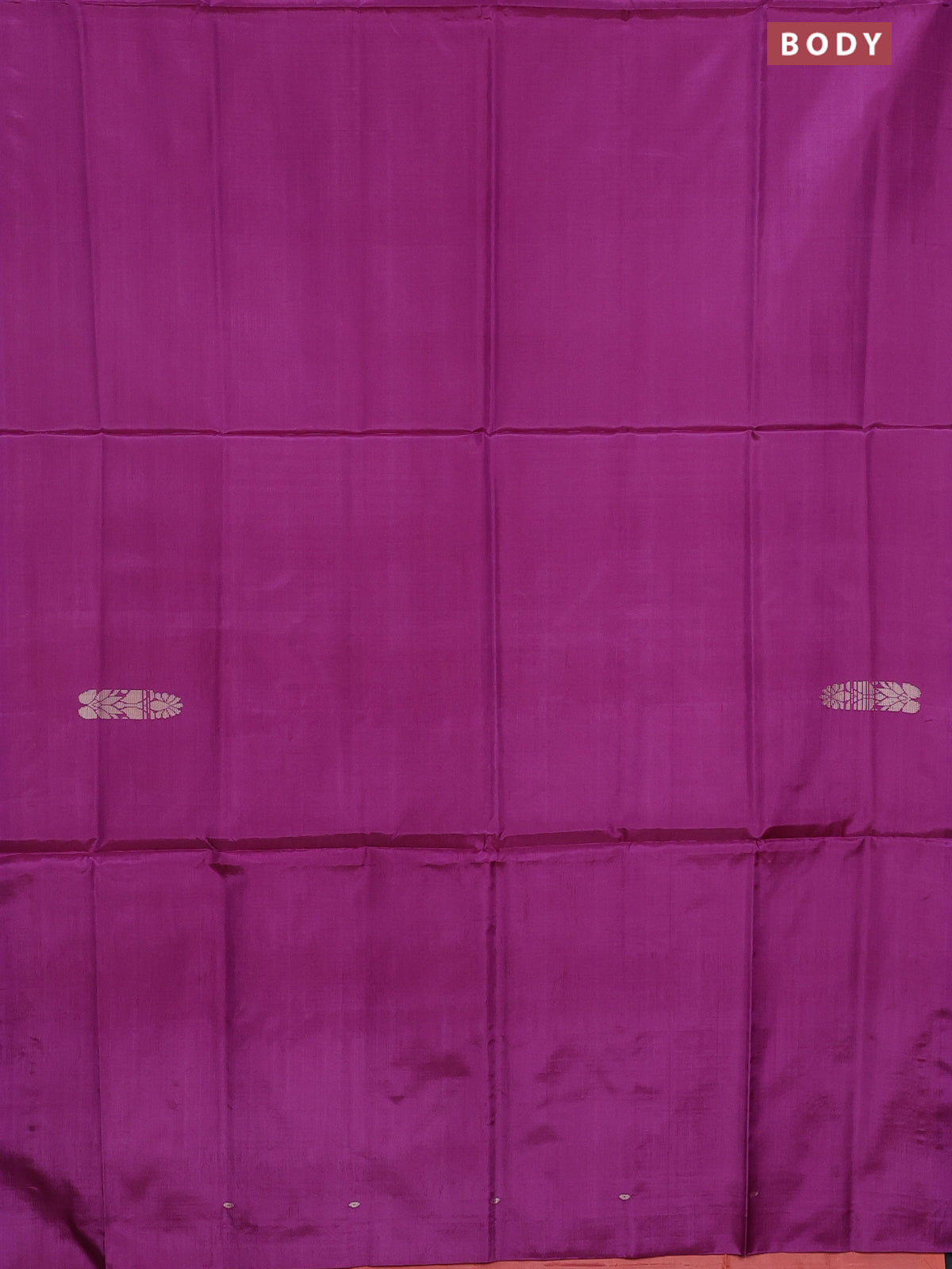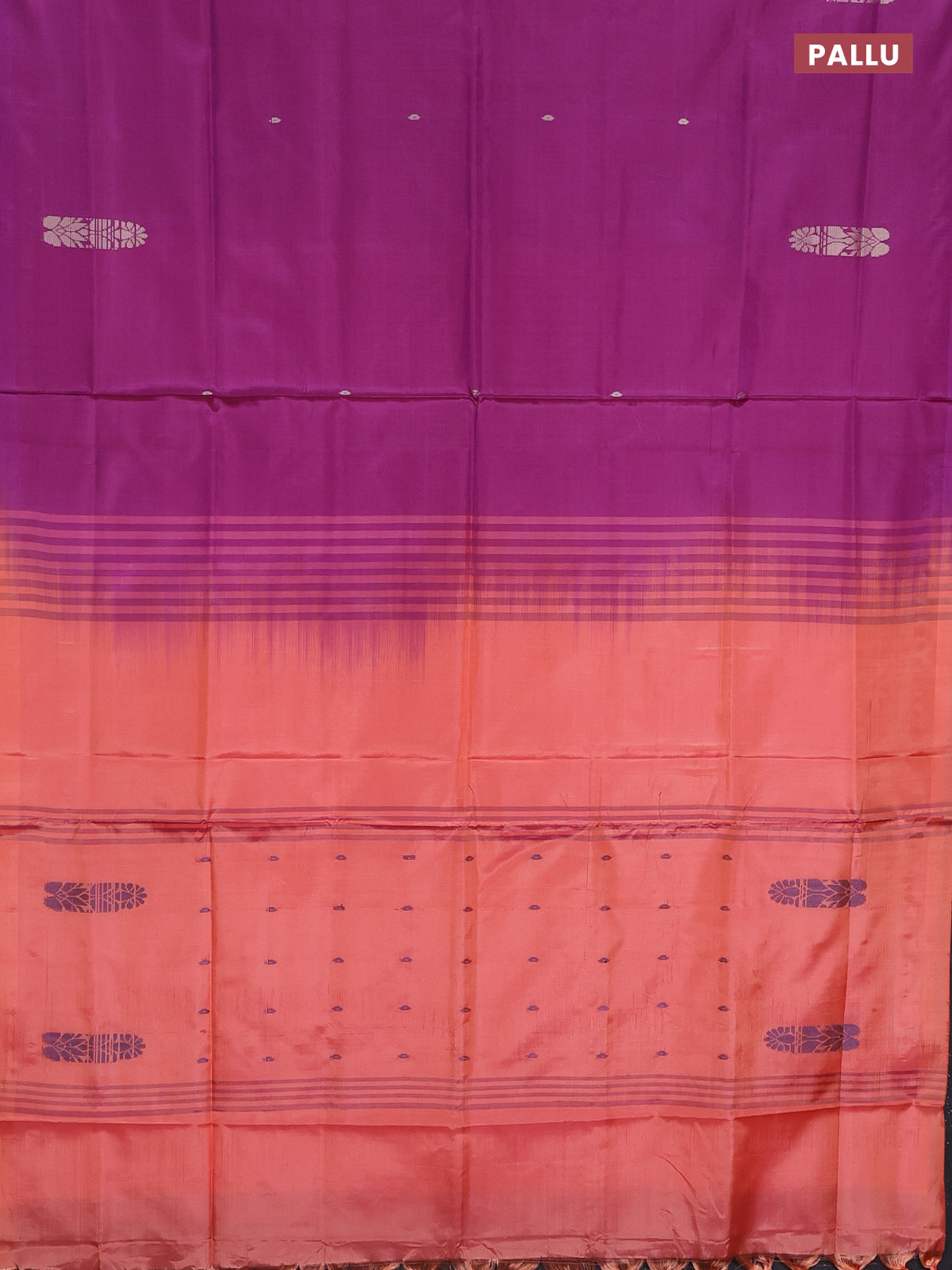 Banana pith saree purple and orange with thread woven buttas in borderless style