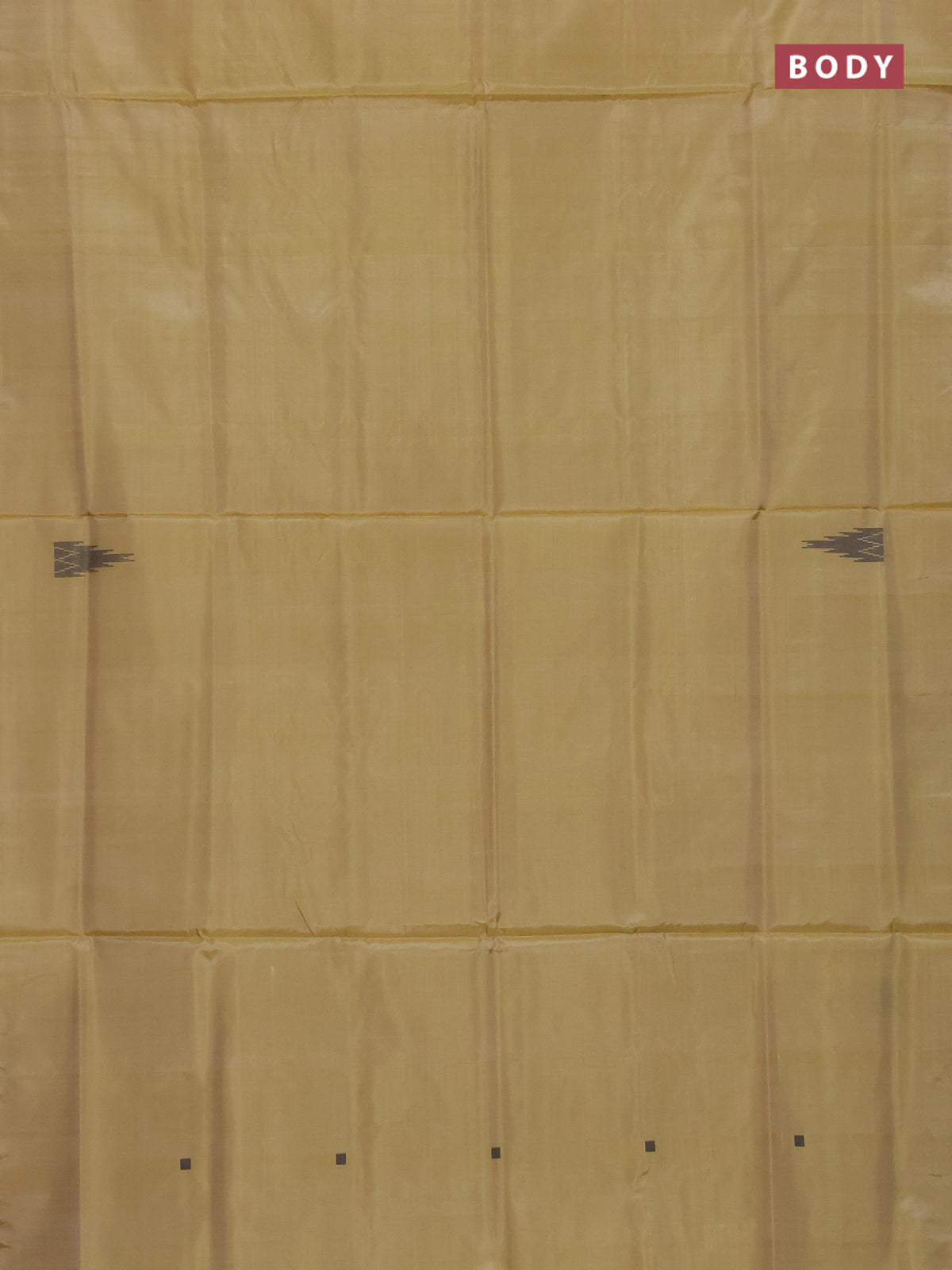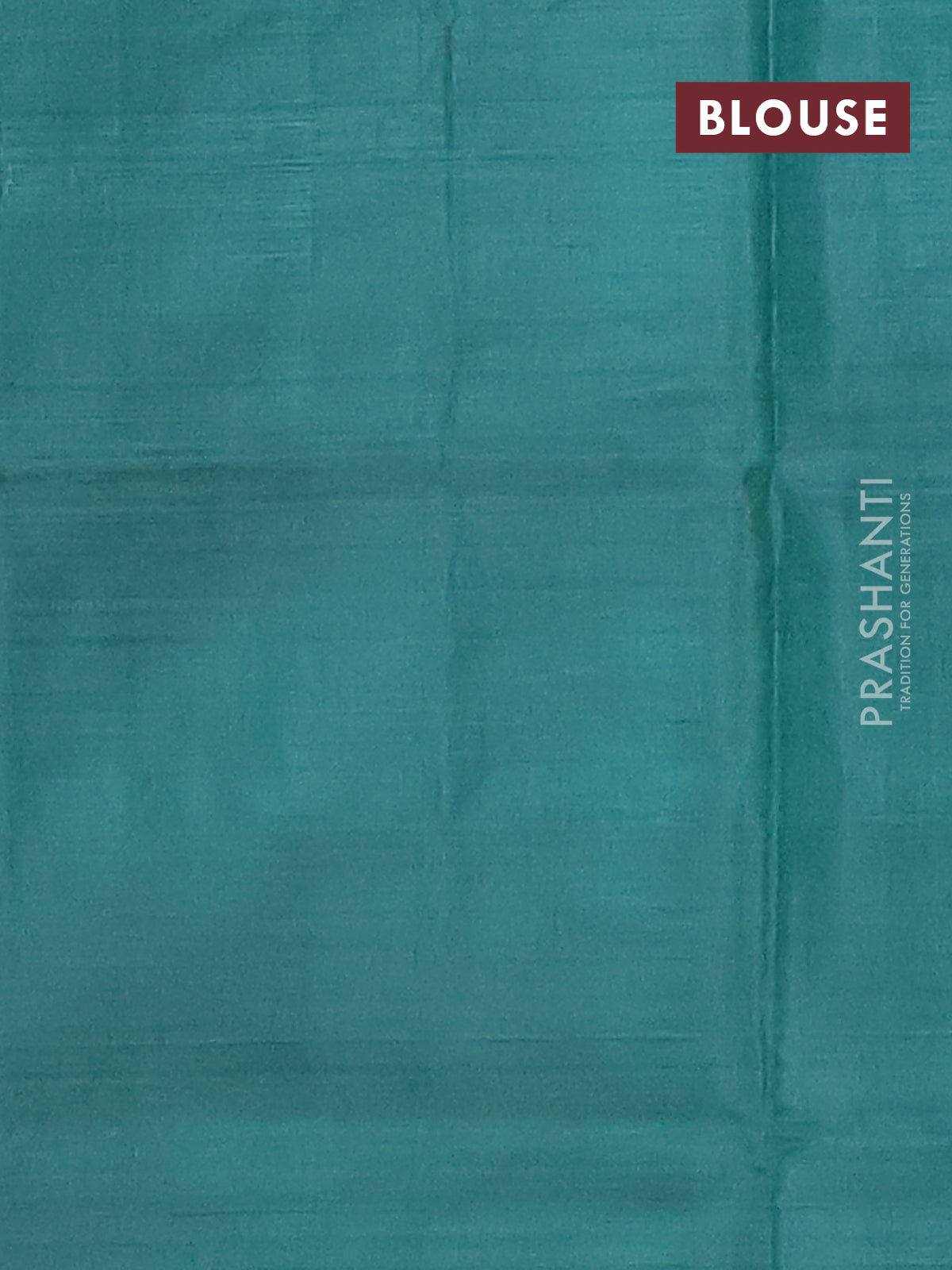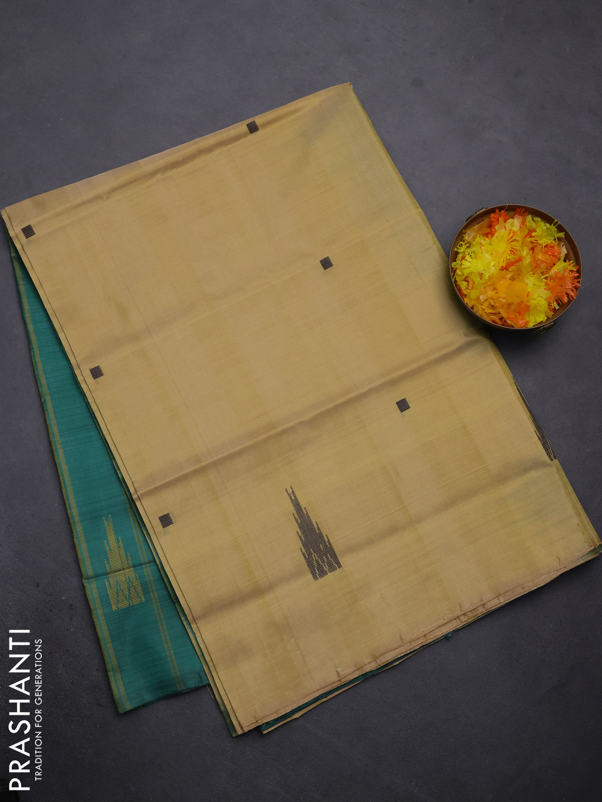 Banana pith saree sandal and teal green with thread woven buttas in borderless style