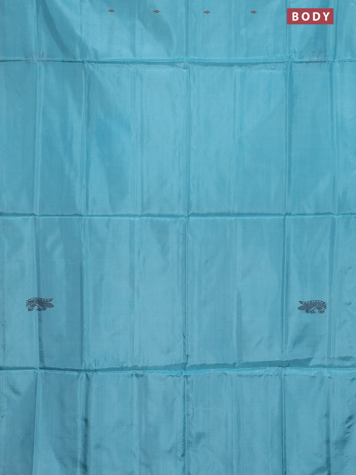 Banana pith saree teal blue and dual shade of pink with thread woven buttas in borderless style