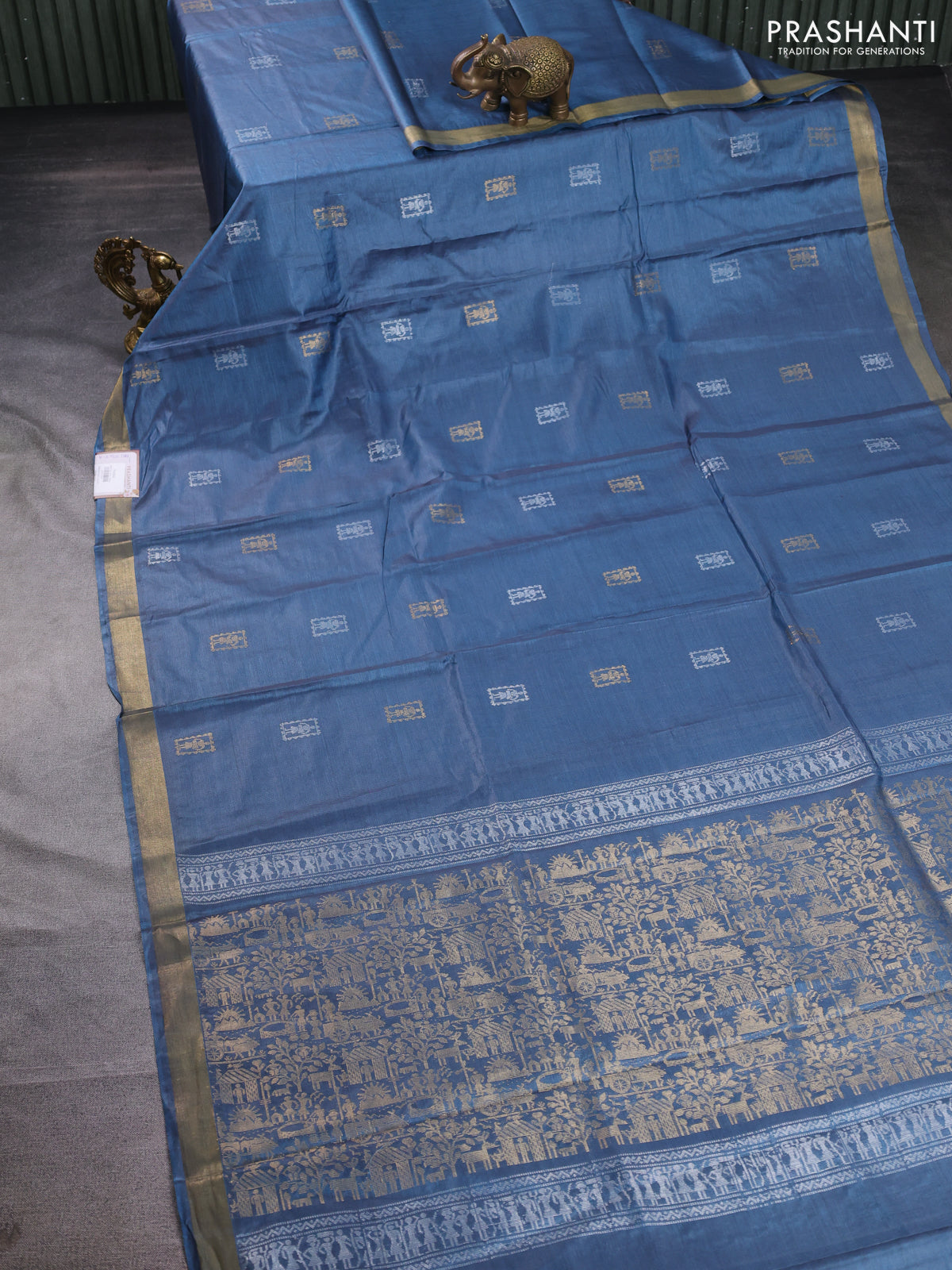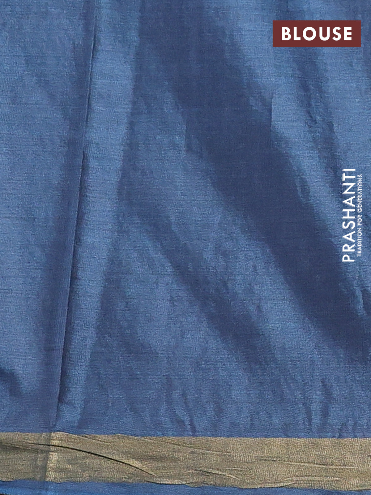 Banana silk saree blue shade with silver & gold zari woven buttas and zari woven border