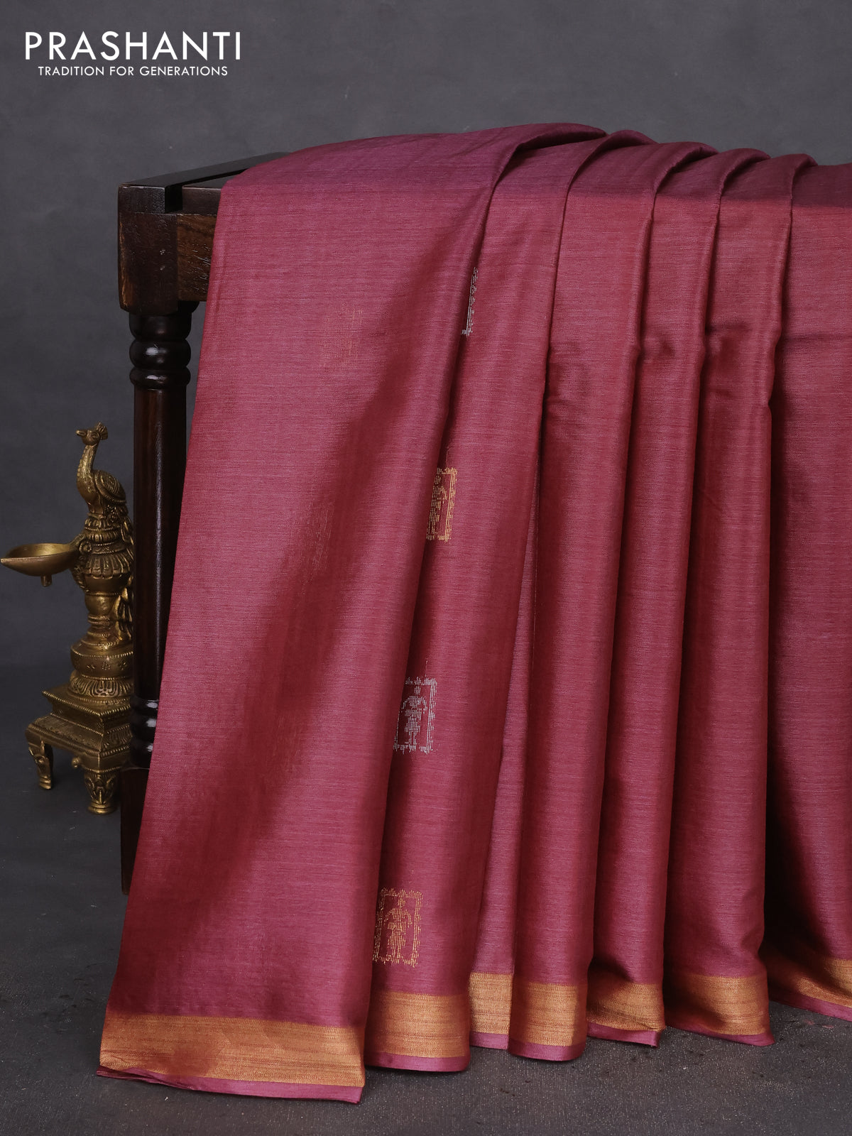 Banana silk saree maroon with silver & gold zari woven buttas and zari woven border