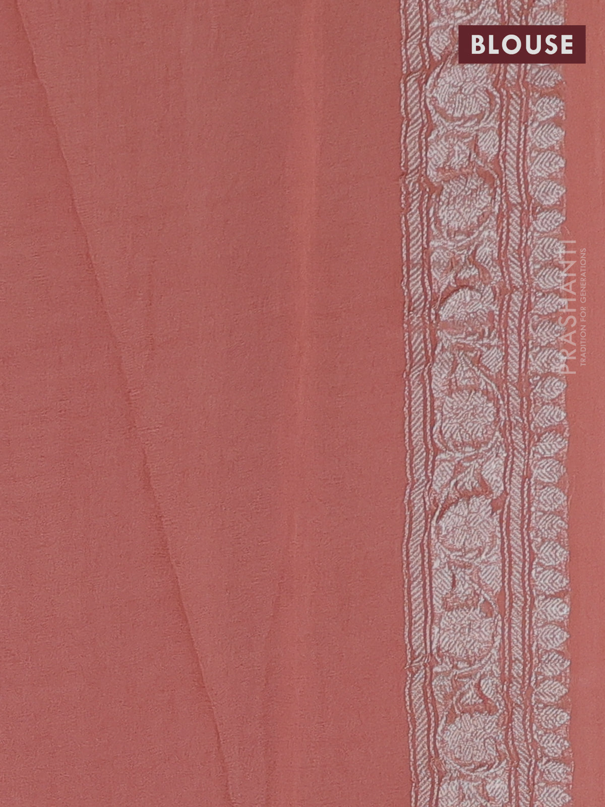 Banarasi chiffon silk saree pastel peach with silver zari woven buttas and floral silver zari woven border