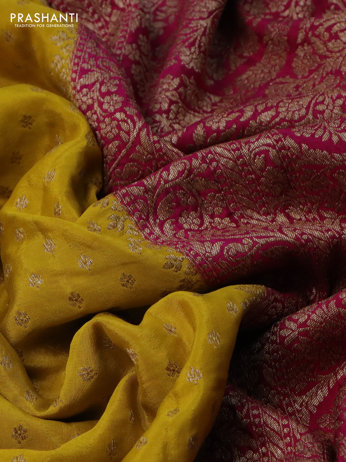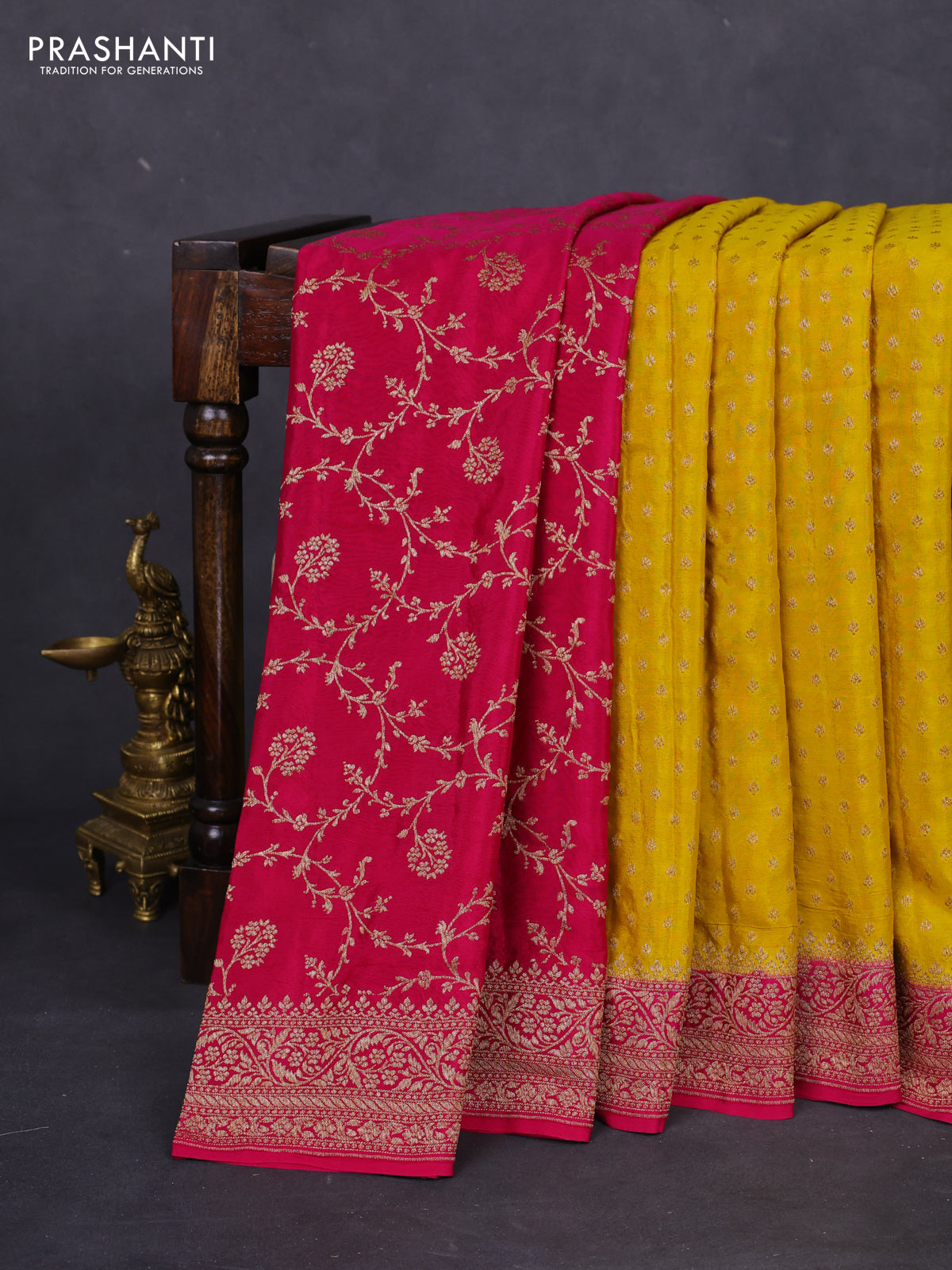 Banarasi crepe partly saree yellow and pink with allover thread & zari woven butta weaves and woven border