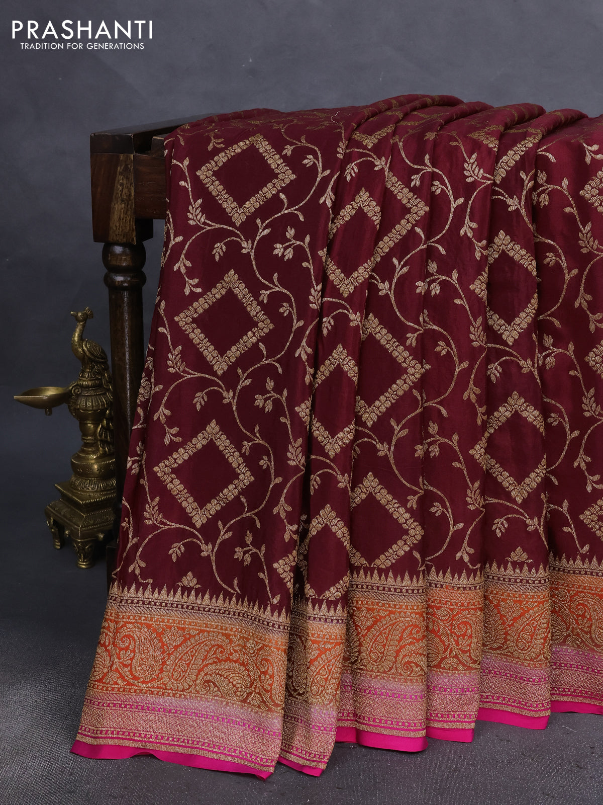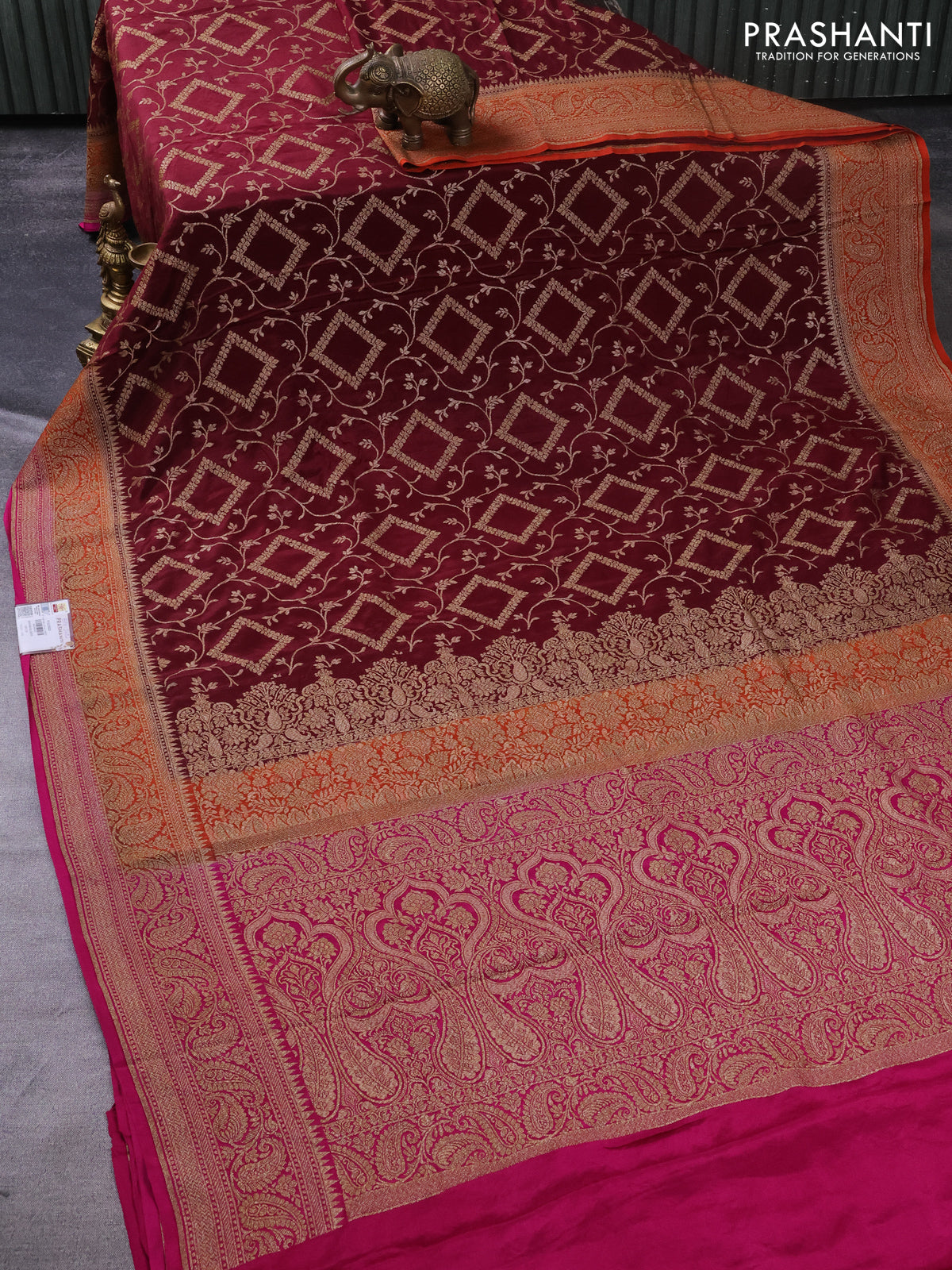 Banarasi crepe saree maroon and orange pink with allover thread & zari weaves and woven border
