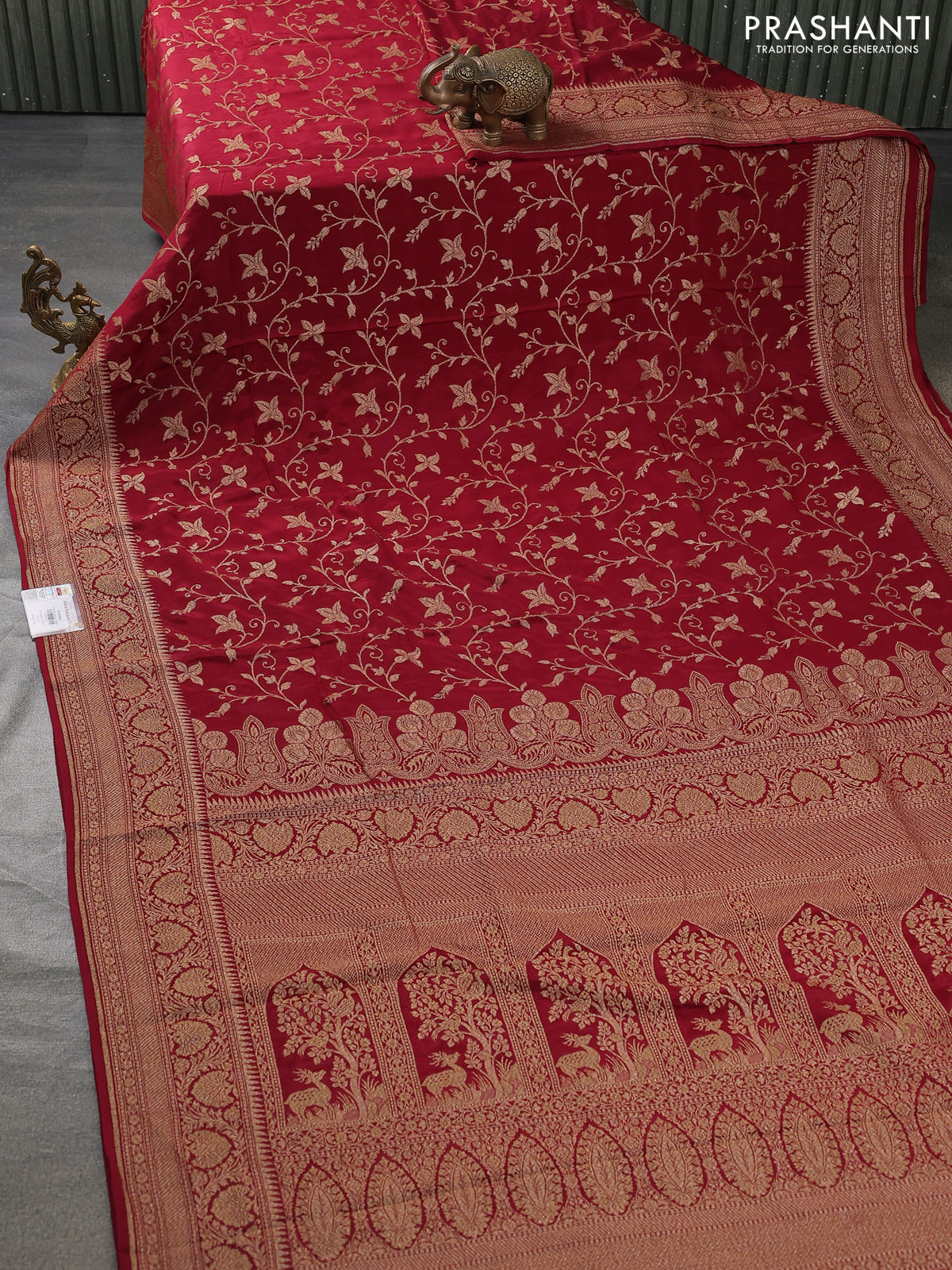 Banarasi crepe saree maroon with allover thread & zari weaves and woven border
