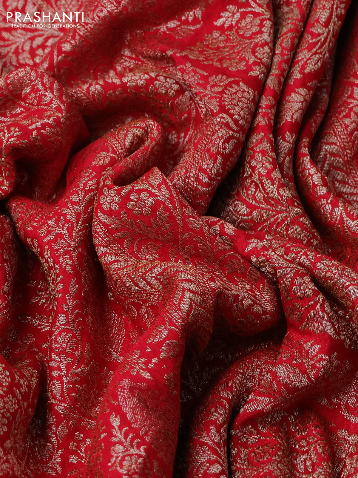 Banarasi crepe saree red with allover thread & zari weaves and woven border