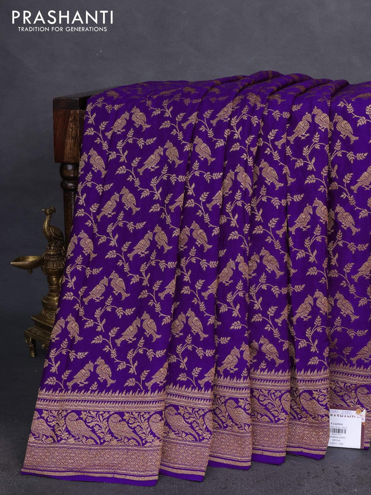 Banarasi crepe saree violet with allover thread & zari weaves and woven border