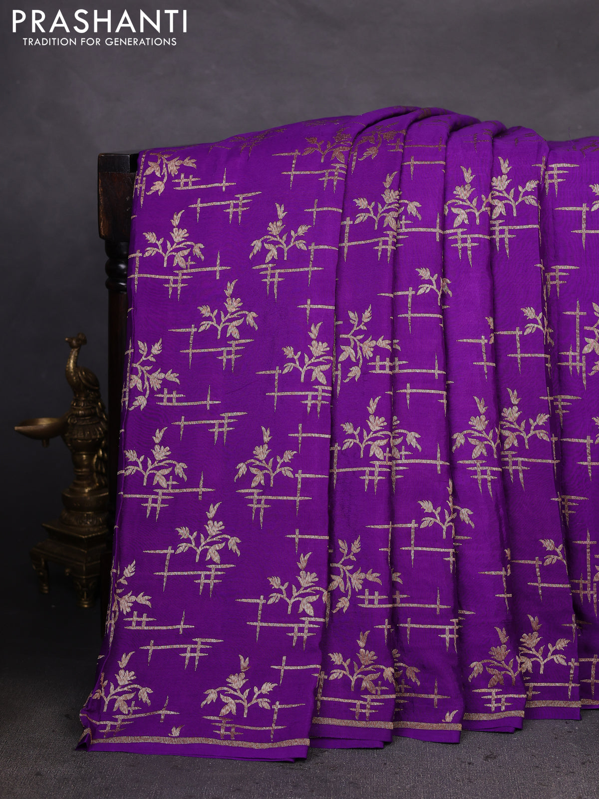 Pure Banarasi Crepe sarees featuring a fluid drape and graceful sheen, offering a perfect blend of heritage craftsmanship and modern elegance. Curated by Prashanti for effortless luxury and timeless style.