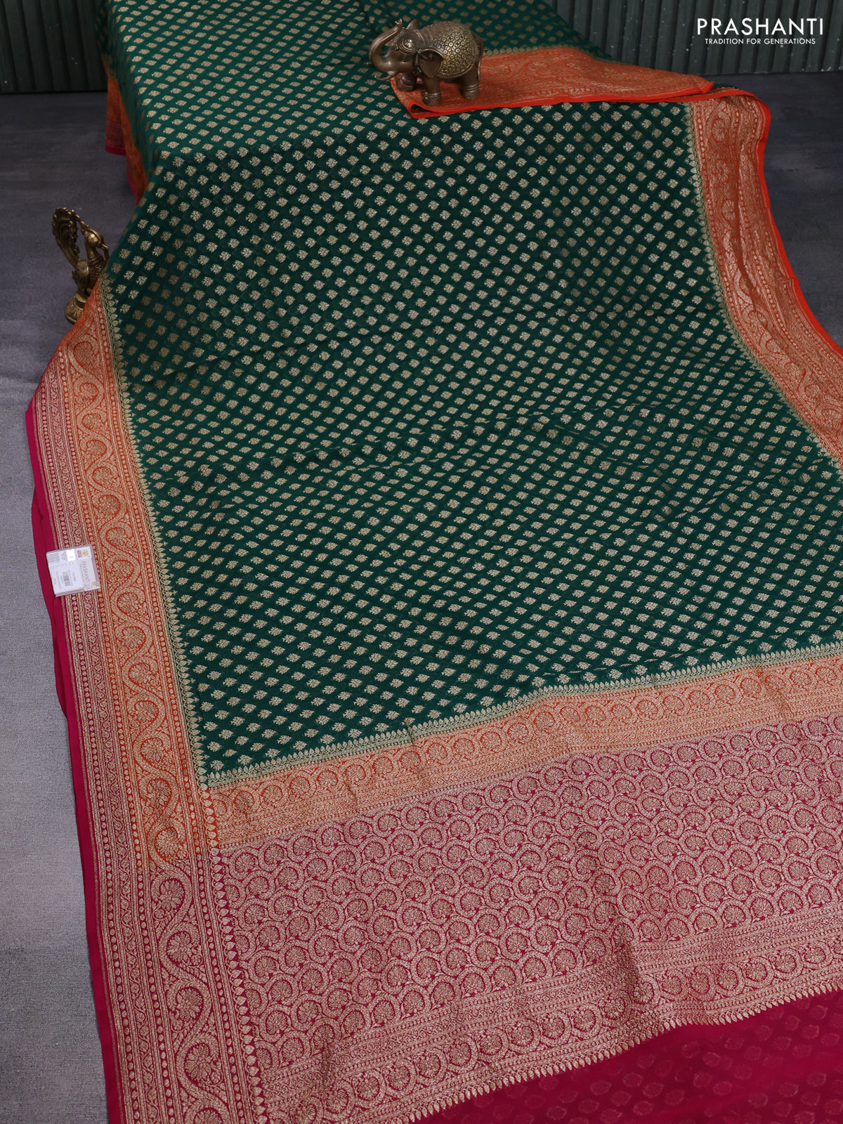 Banarasi georgette saree green and orange pink with allover thread & zari woven buttas and woven border