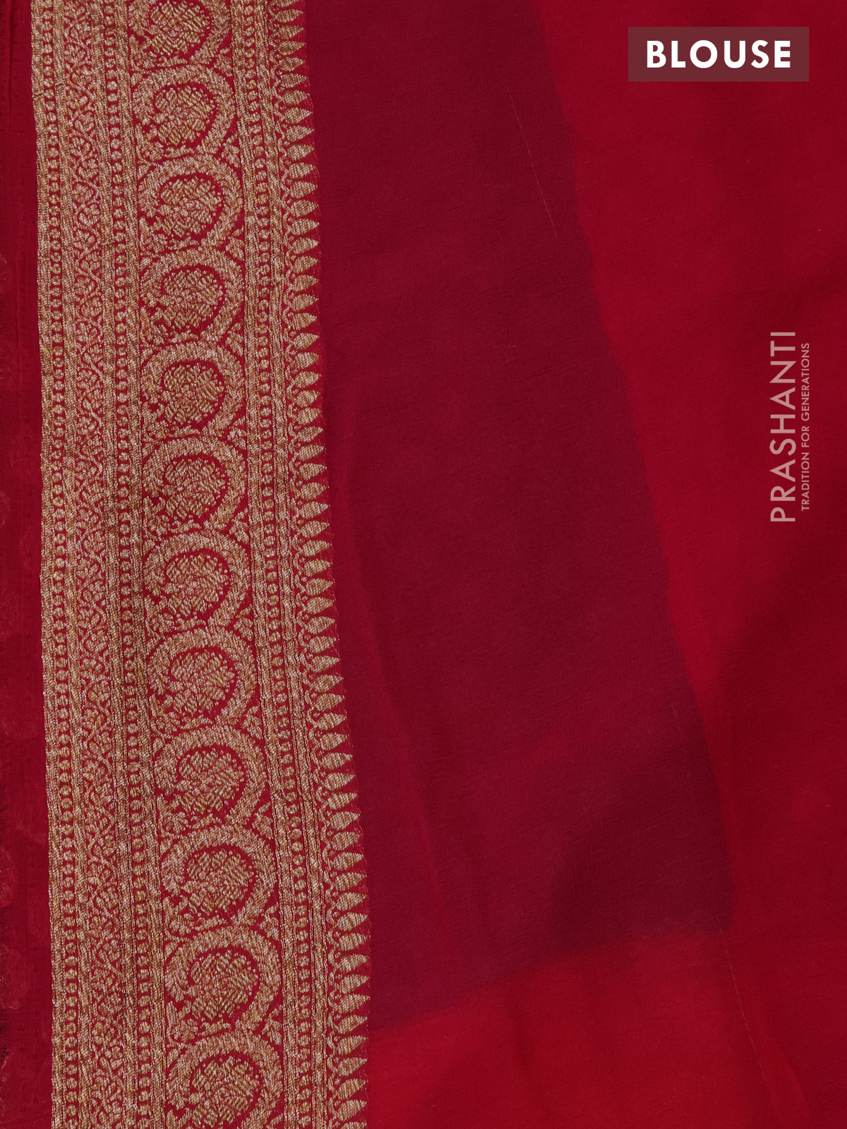 Material :Banarasi Geogette SILK MARK CERTIFIED Blouse : Attached Length of saree : 6.2 mts (5.5 mts saree & 70... Read more