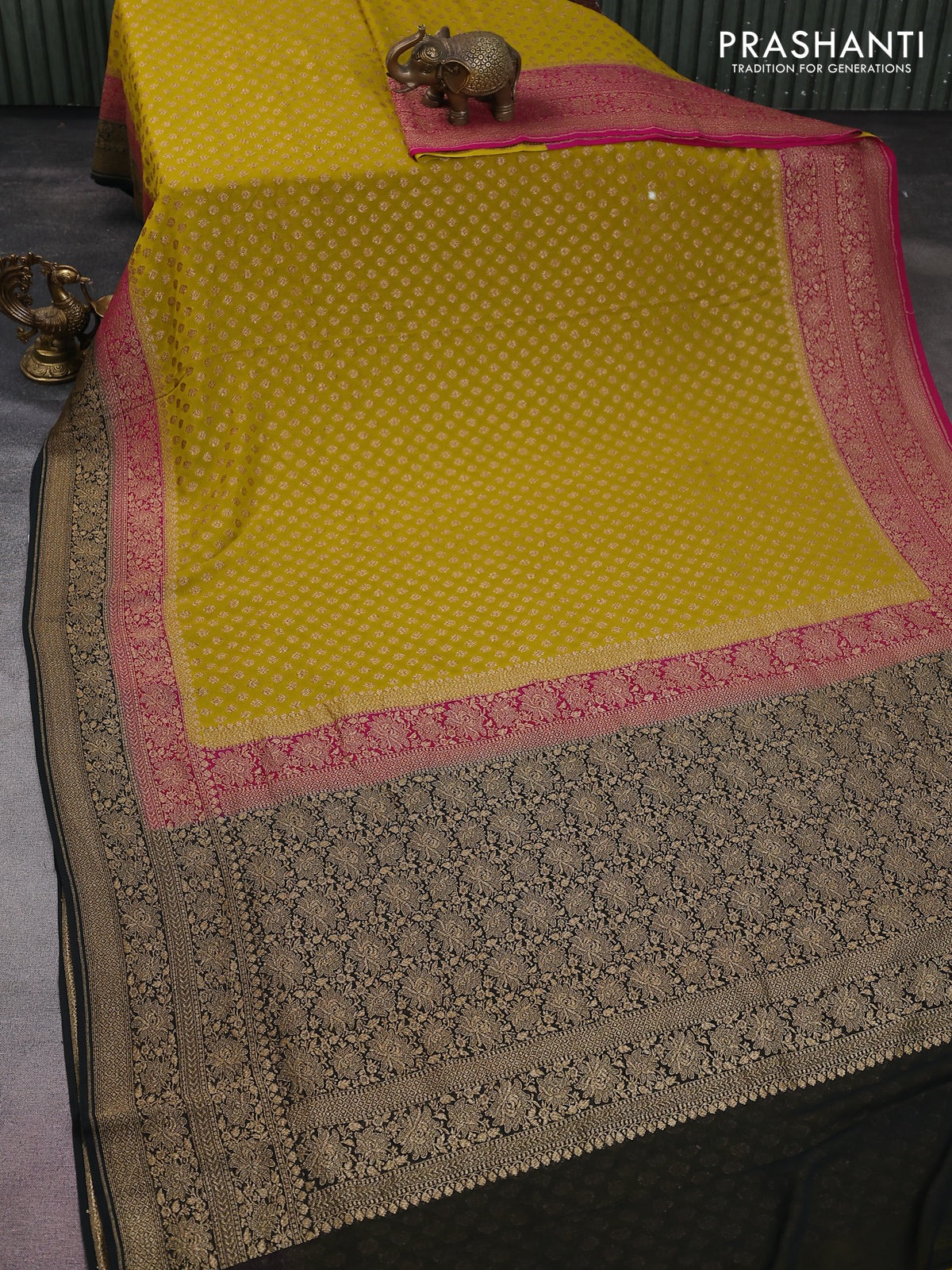 Banarasi georgette saree mustard yellow and pink black with allover thread & zari woven butta weaves and woven border