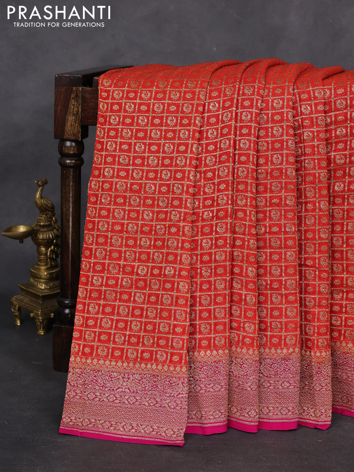 Pure Banarasi Georgette sarees celebrated for their fluid drape and timeless Banarasi elegance, perfect for graceful festive occasions and cherished gifting. Silk Mark certified and one of Prashanti’s most admired and signature collections.