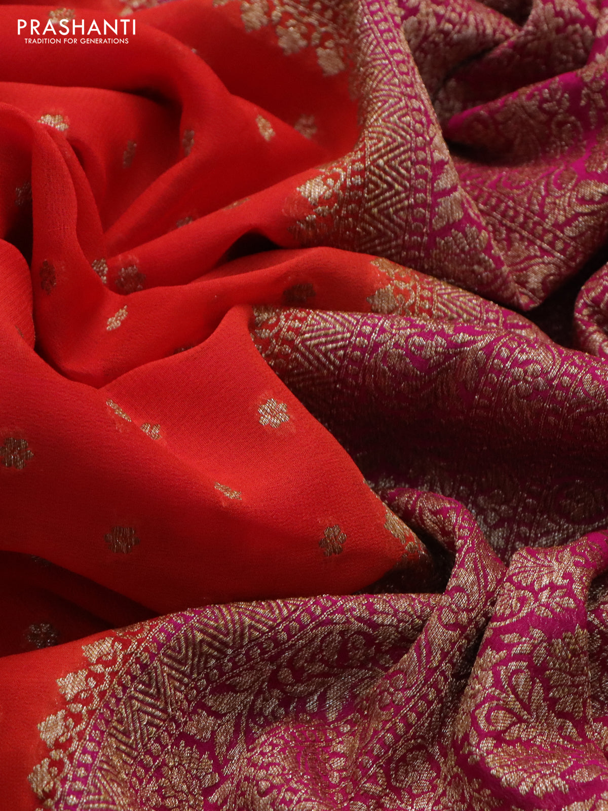 Banarasi georgette saree orange and pink with allover thread & zari woven buttas and woven border