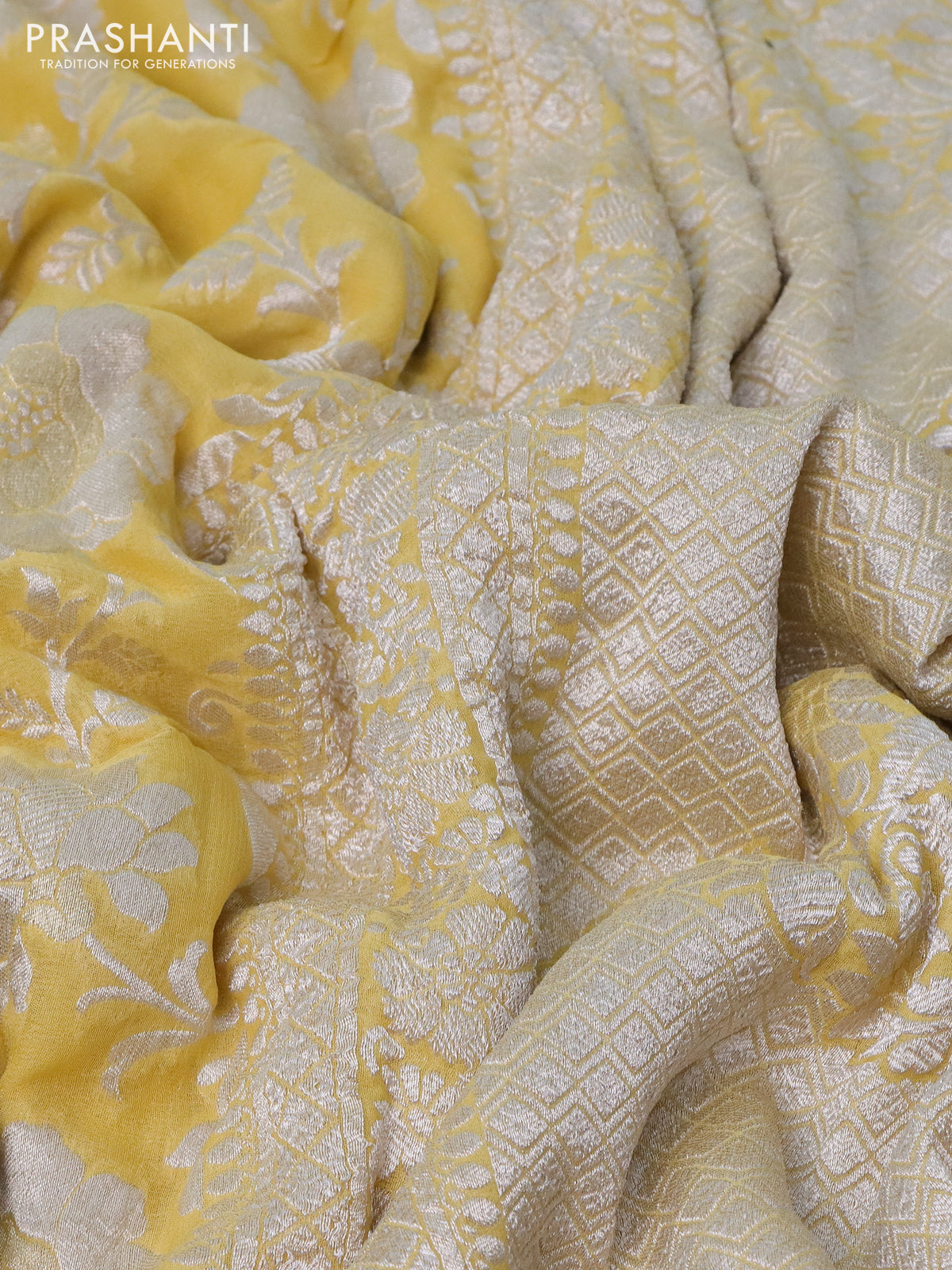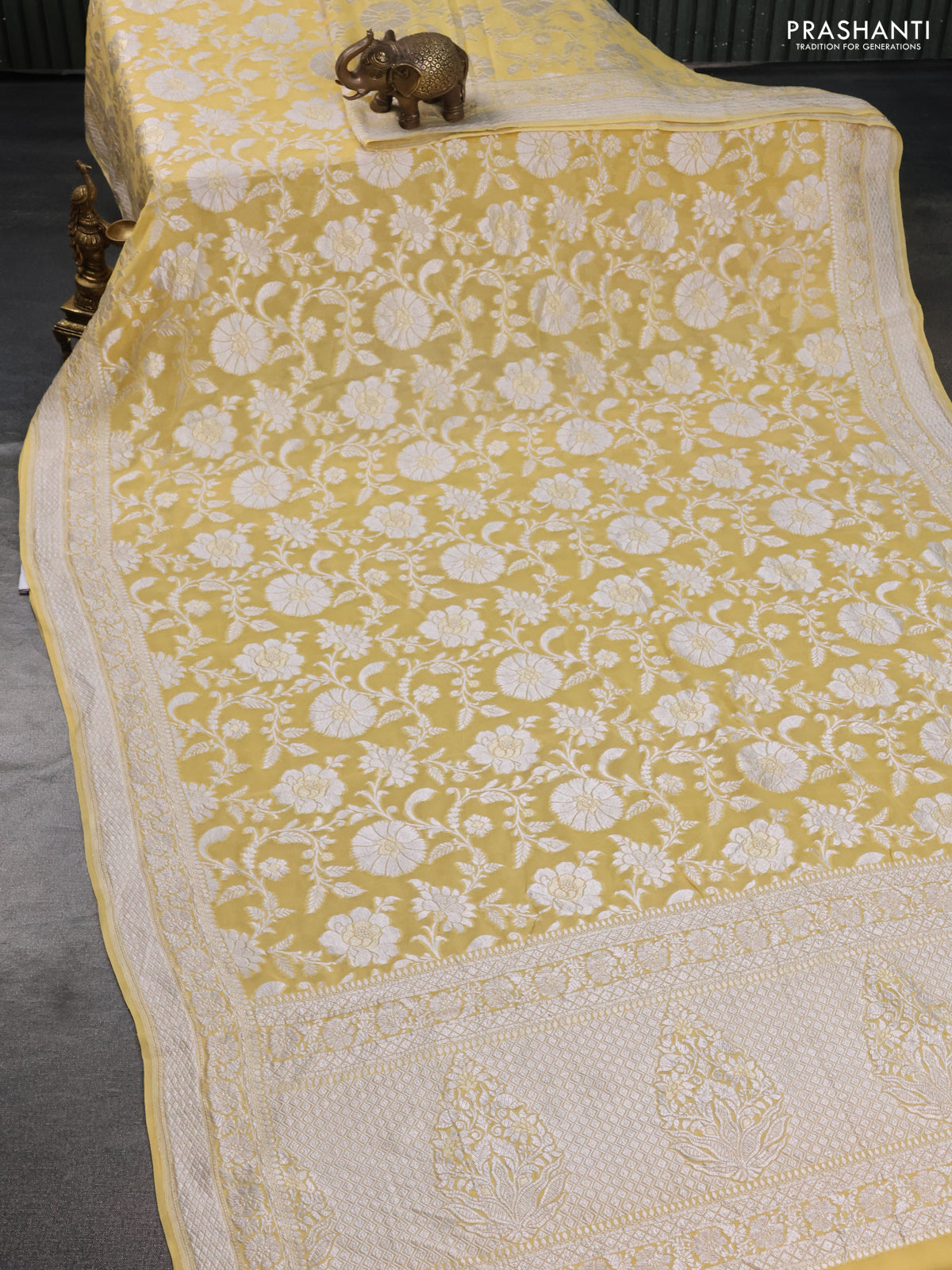 Banarasi georgette saree pale yellow with allover thread & zari woven floral weaves and woven border