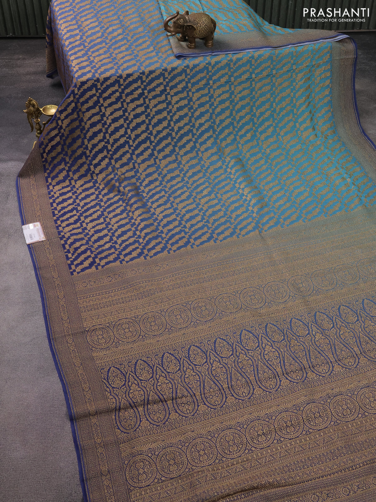 Banarasi georgette saree pastel blue and blue shade with allover thread & zari weaves and woven border