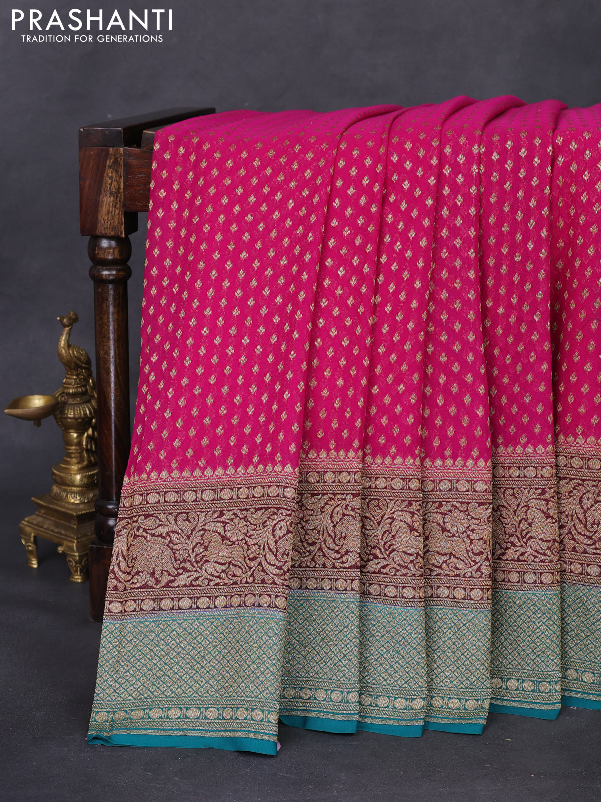 Banarasi georgette saree pink and teal green with allover thread & zari woven butta weaves and long woven border