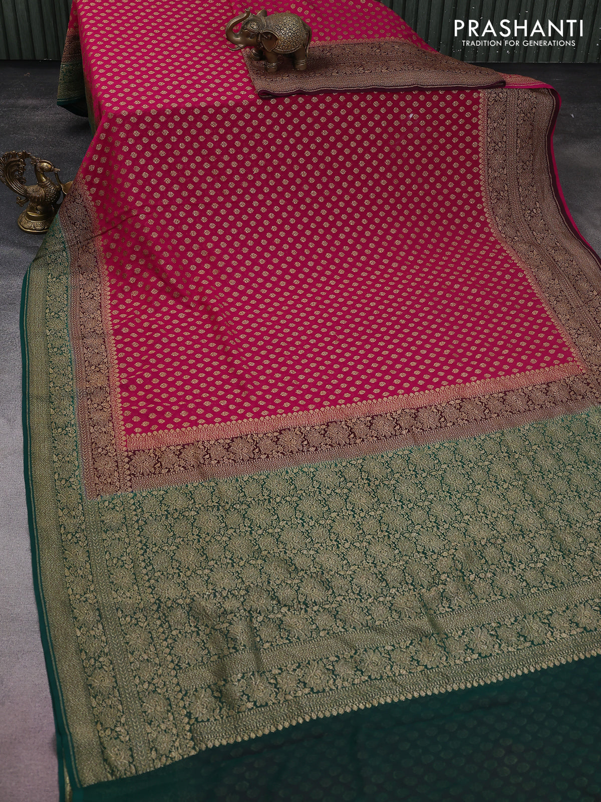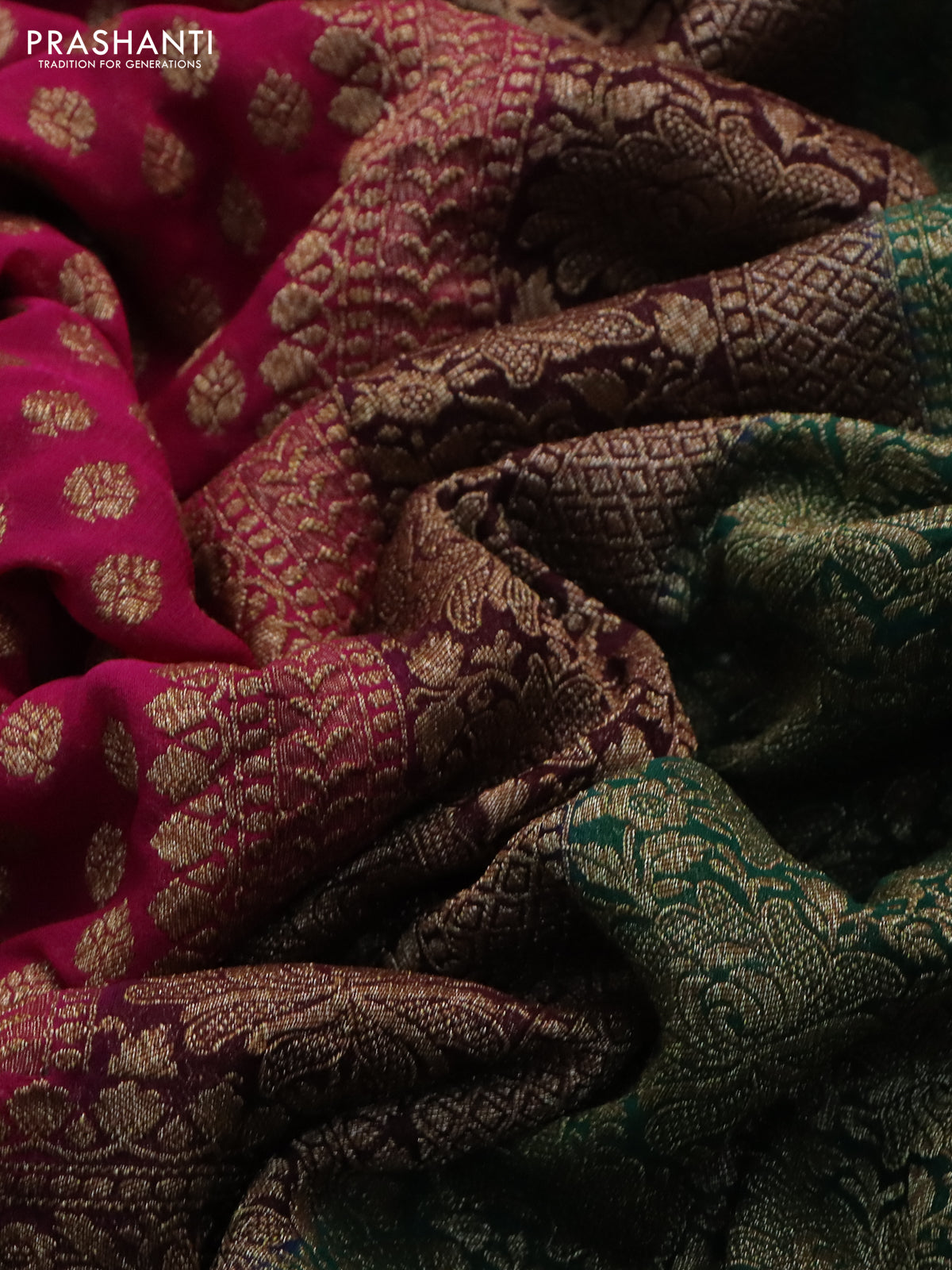 Banarasi georgette saree pink and wine green with allover thread & zari woven butta weaves and woven border