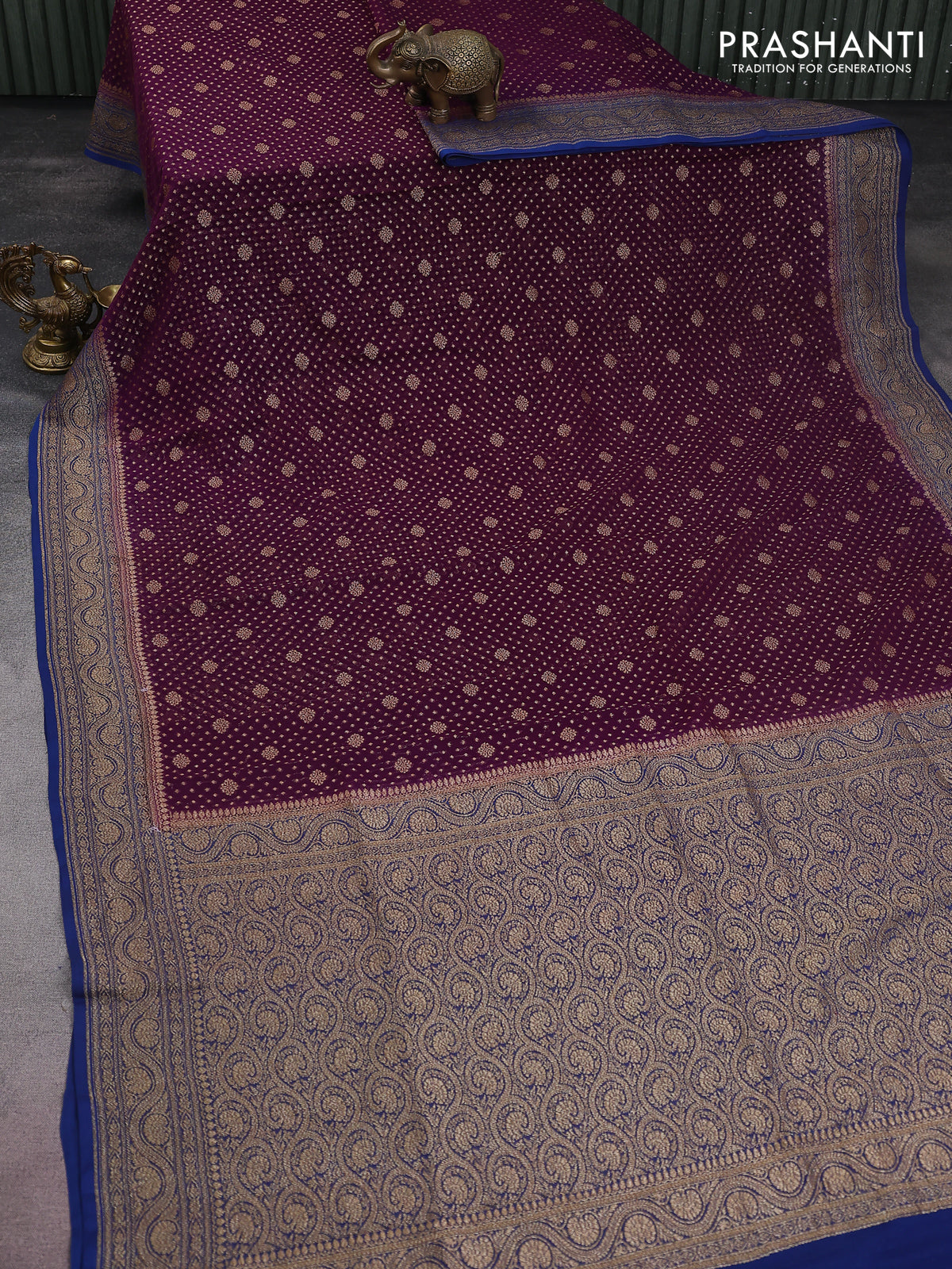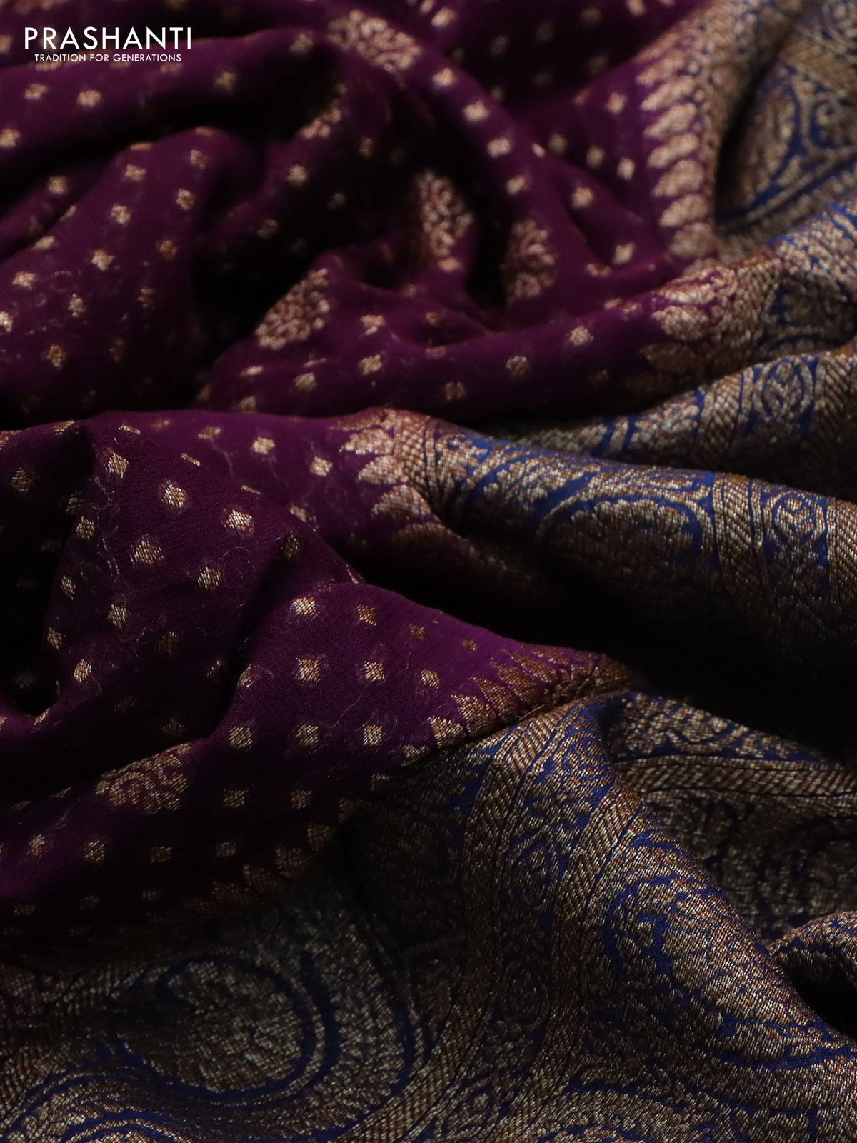 Banarasi georgette saree purple and blue with allover thread & zari woven butta weaves and woven border