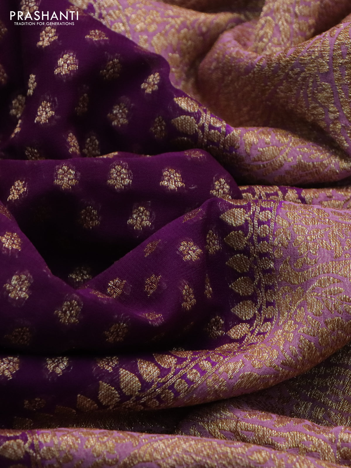 Banarasi georgette saree purple and lavender shade with allover thread & zari woven butta weaves and woven border