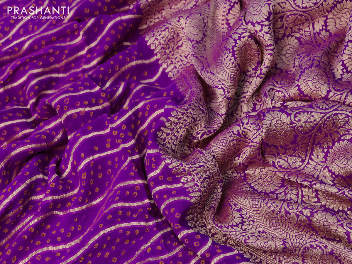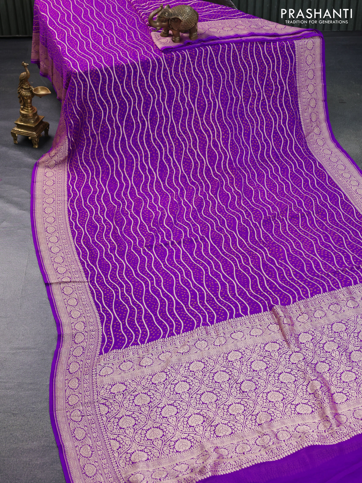 Banarasi georgette saree purple with allover bandhani prints & zari weaves and woven border