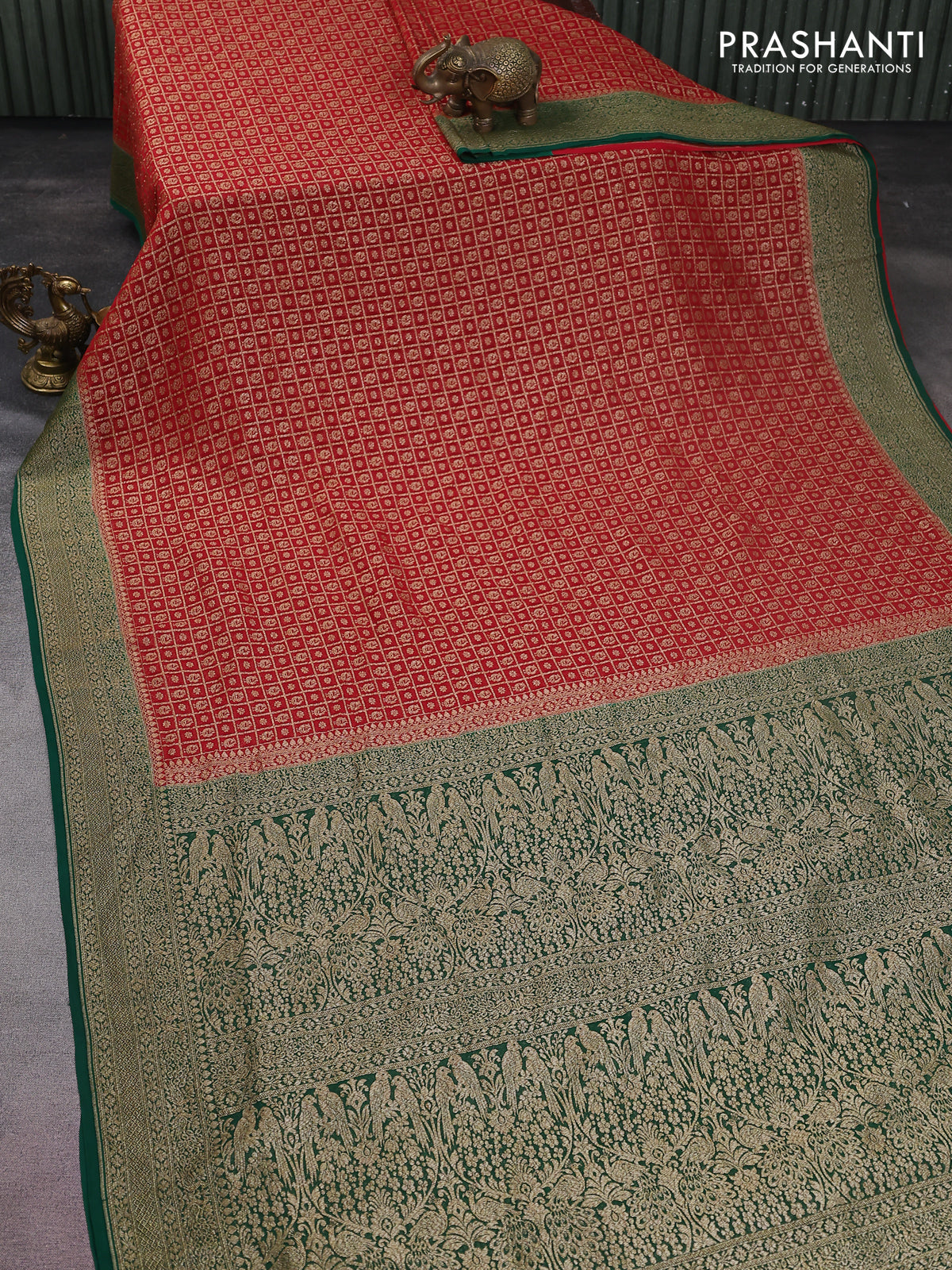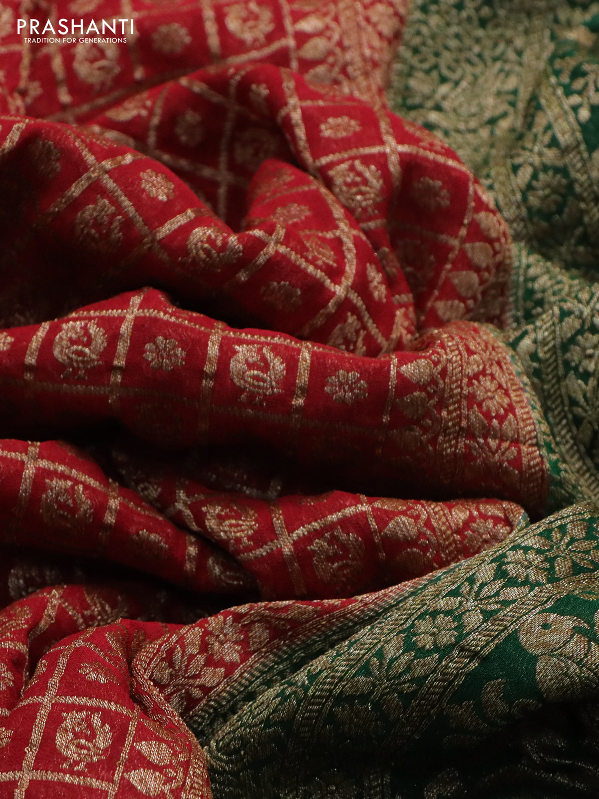 Banarasi georgette saree red and green with allover checked pattern & woven buttas and woven border