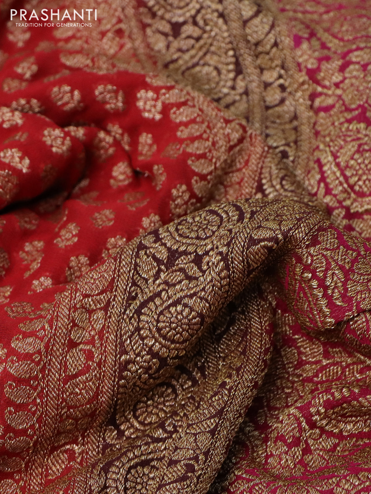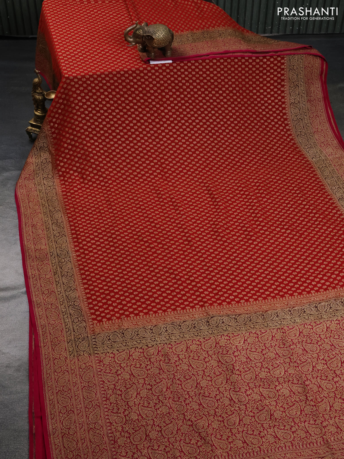Banarasi georgette saree red and pink with allover thread & zari woven floral weaves and woven border