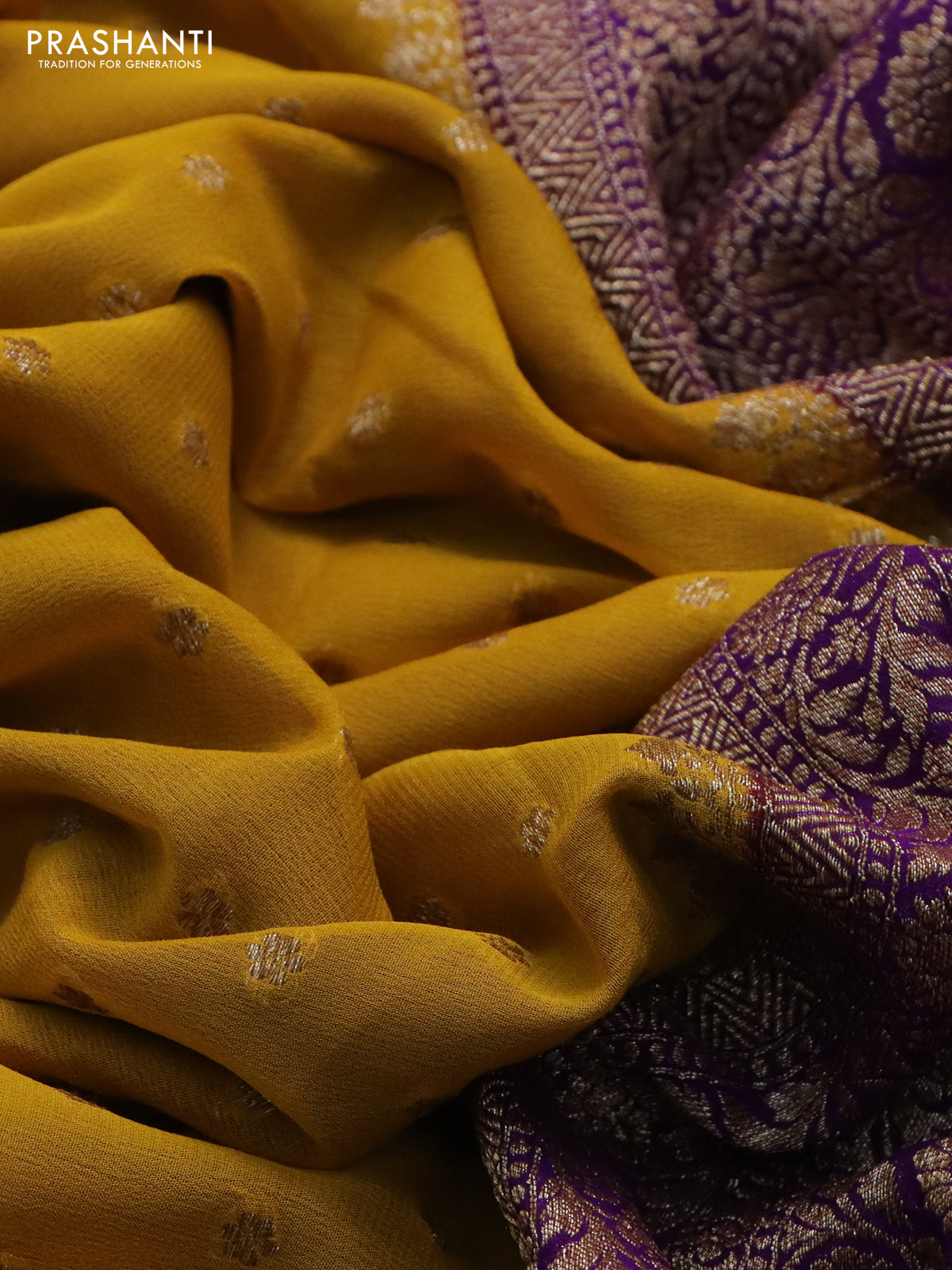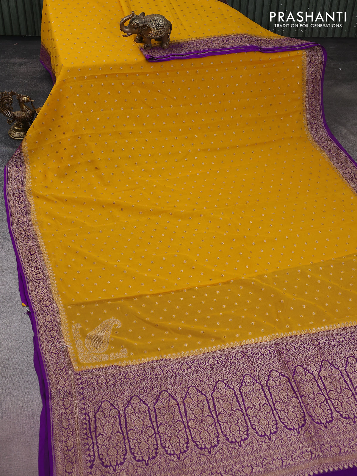 Banarasi georgette saree yellow and purple with allover thread & zari woven buttas and woven border