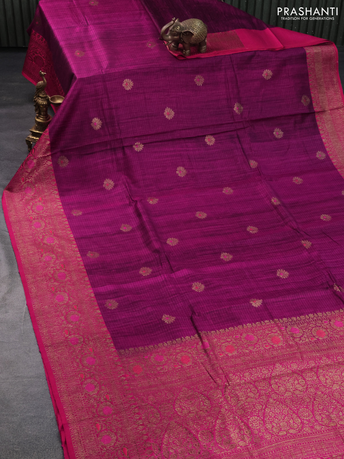 Banarasi handloom dupion silk saree magenta pink and red with woven buttas and woven border