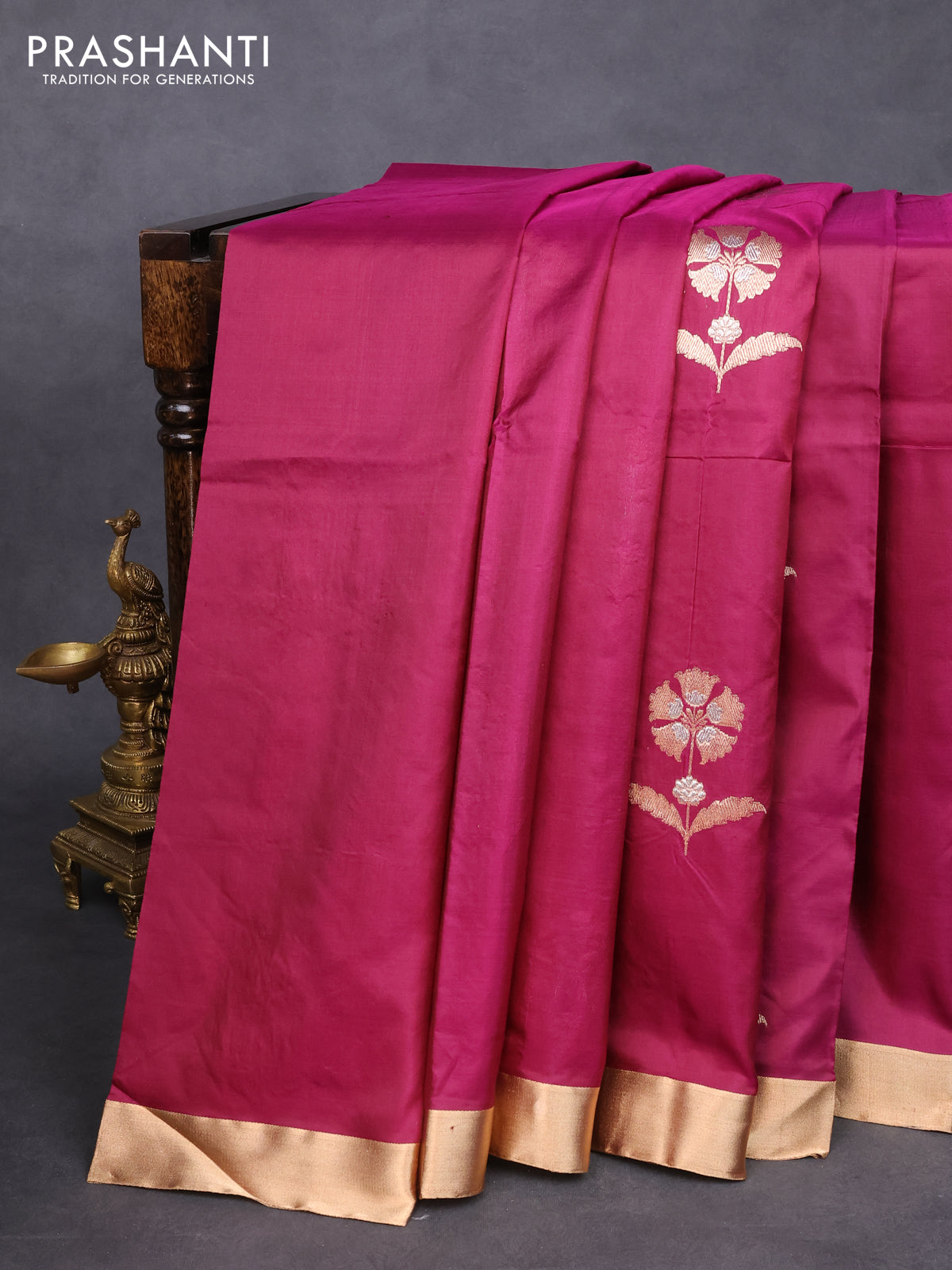 Banarasi katan silk saree dark magenta pink with zari woven floral buttas and zari woven border