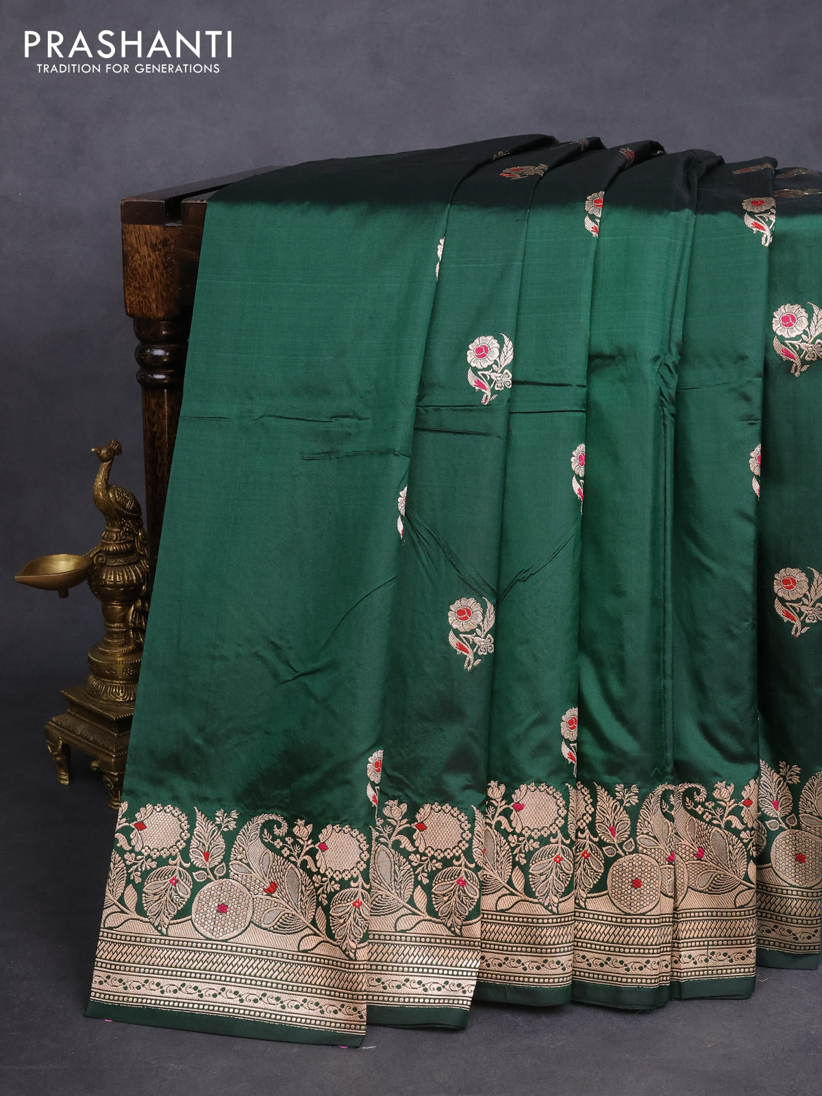 Banarasi katan silk saree green with zari woven floral buttas and zari woven border