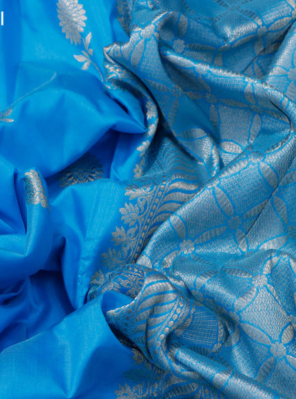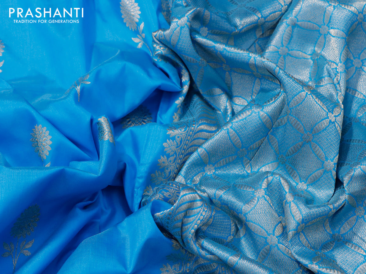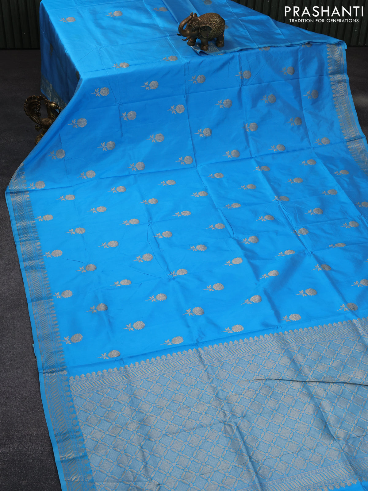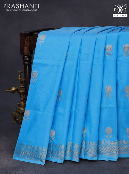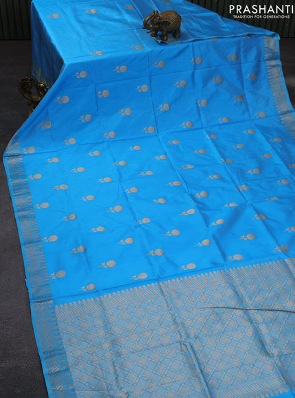 Banarasi katan silk saree light blue with zari woven buttas and zari woven border