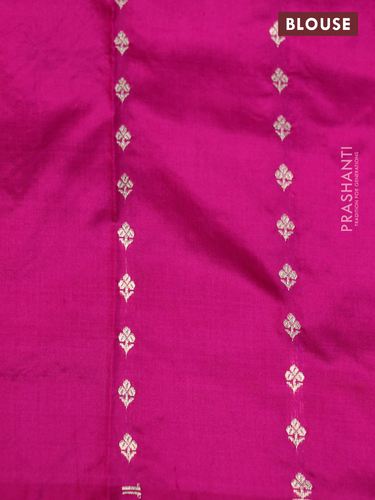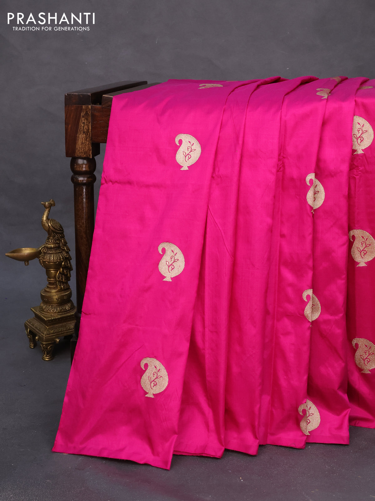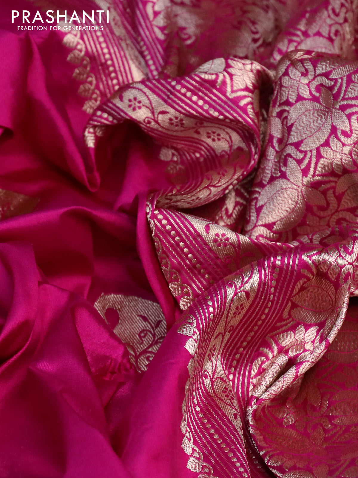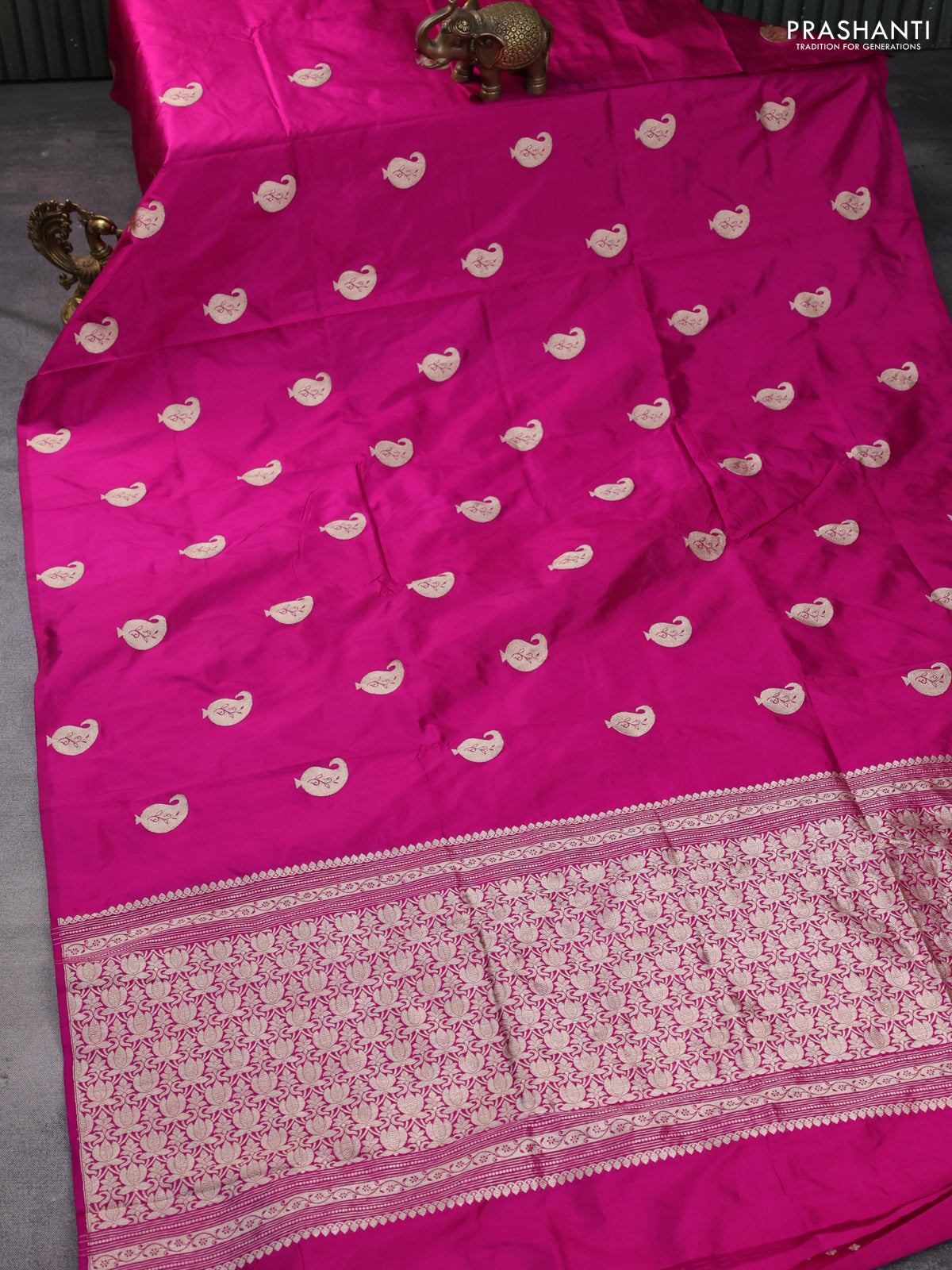 Banarasi katan silk saree magenat pink with paisley zari woven buttas in borderless style