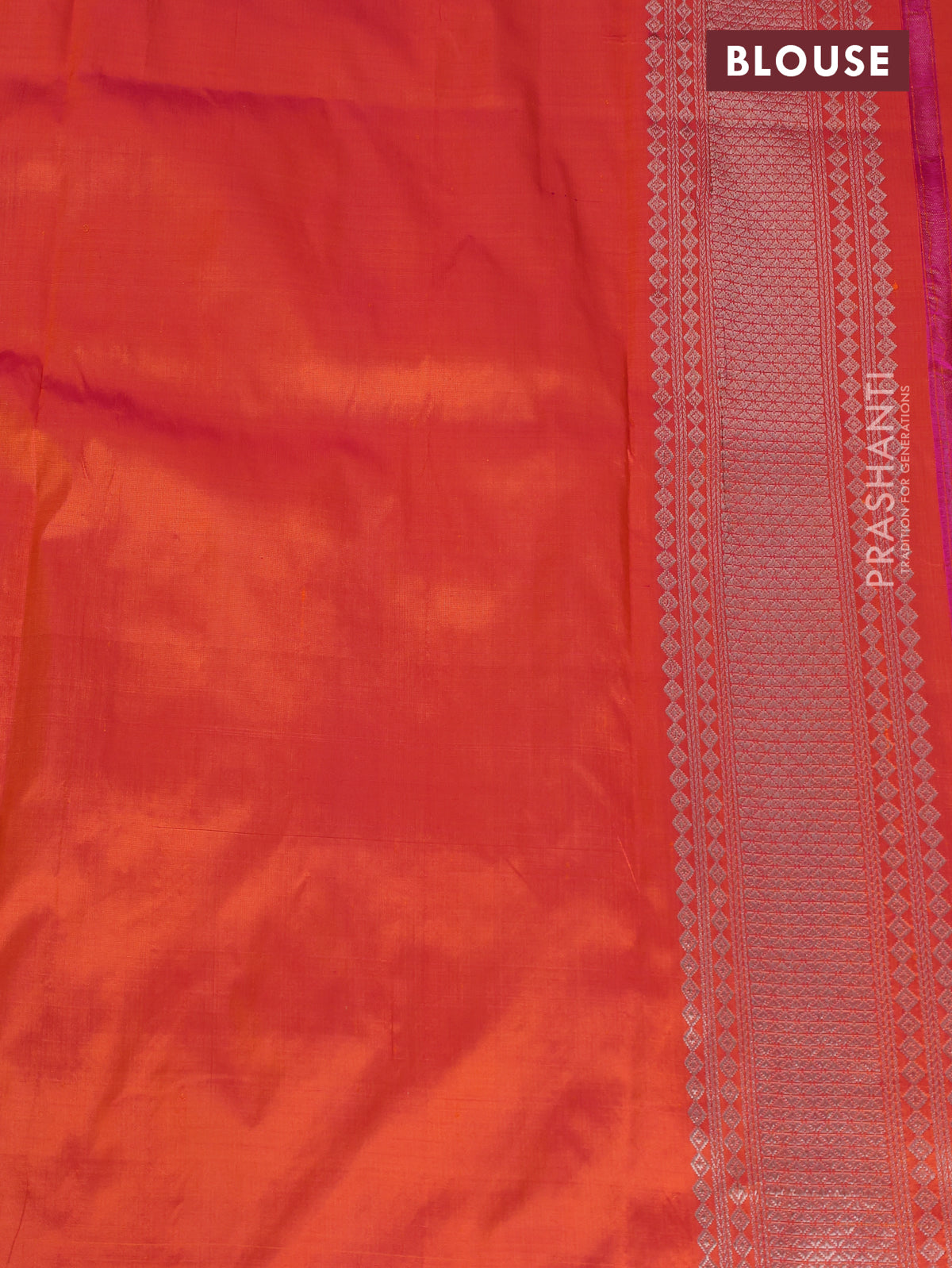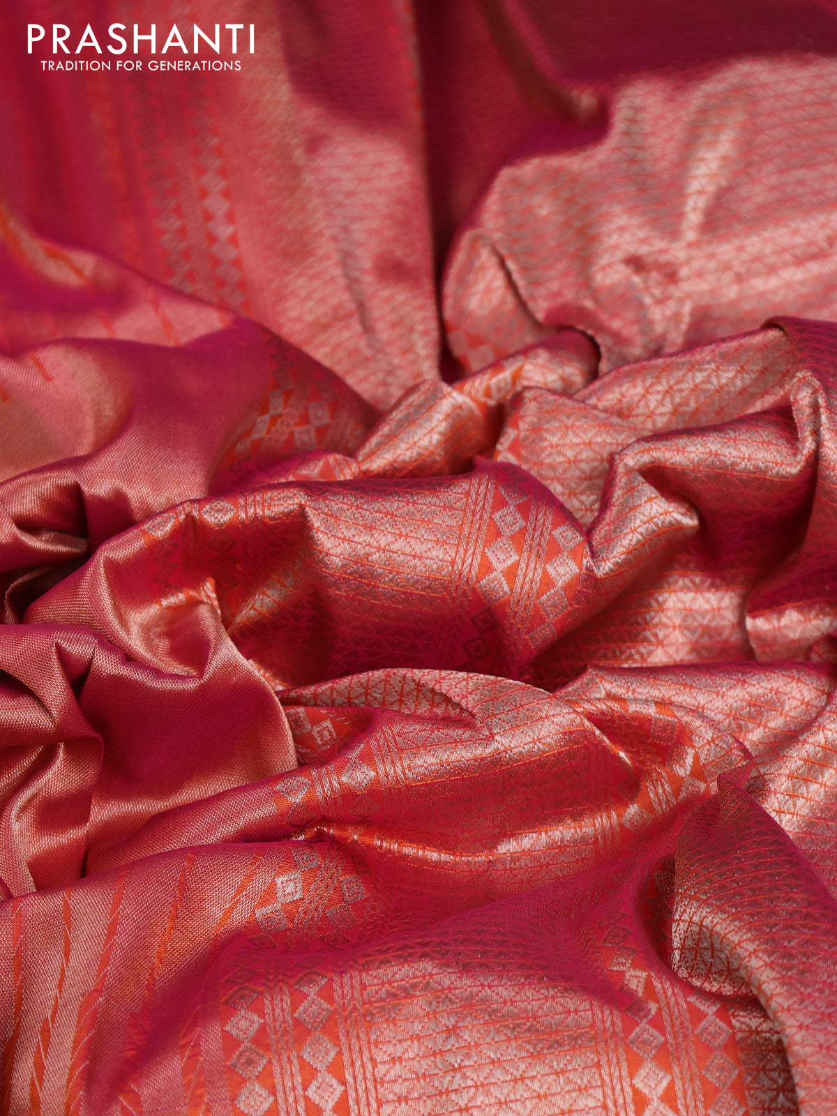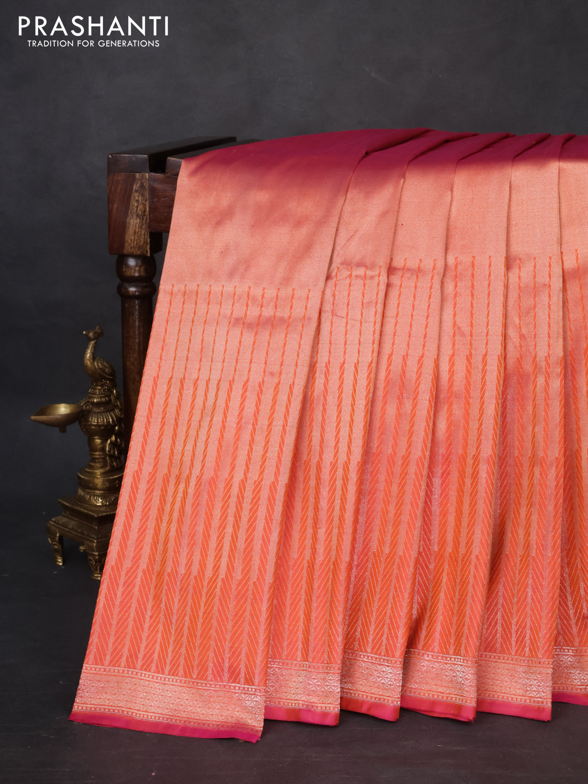 Banarasi katan tissue silk saree dual shade of orange with plain body and long temple design zari woven border