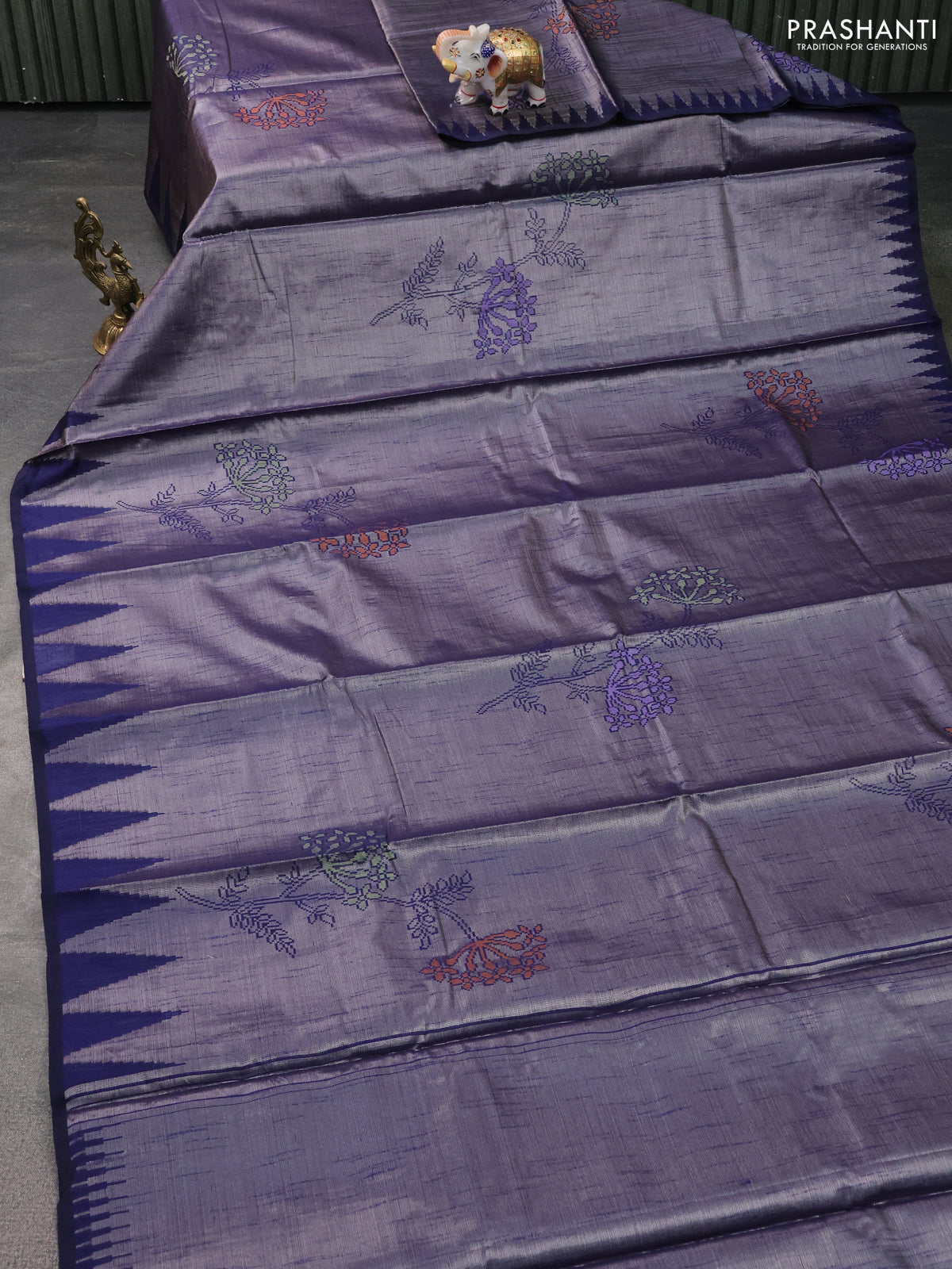 Banarasi matka tissue saree blue with thread woven buttas and temple design zari woven border