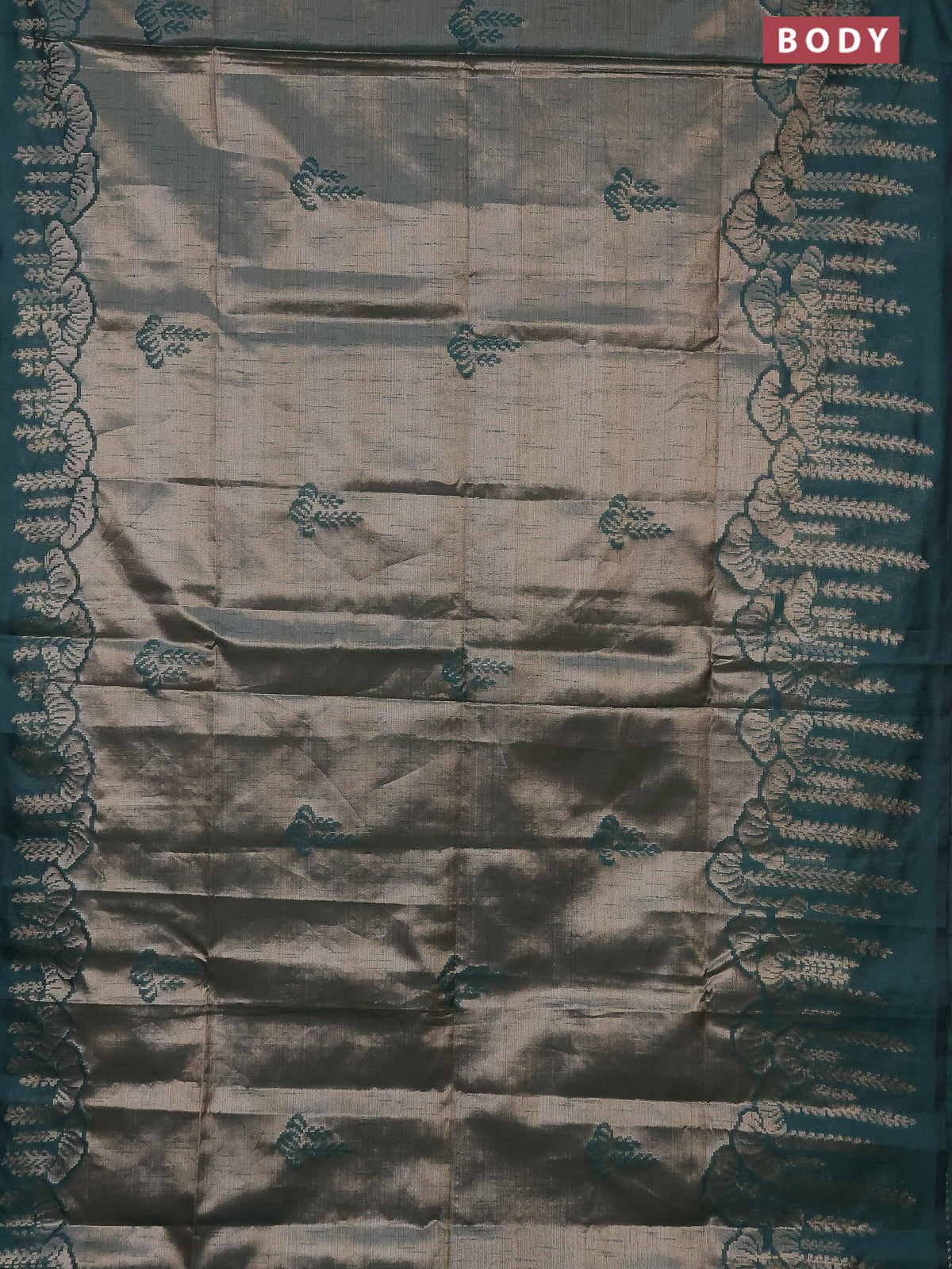 Banarasi matka tissue saree dark green with woven buttas and zari woven border