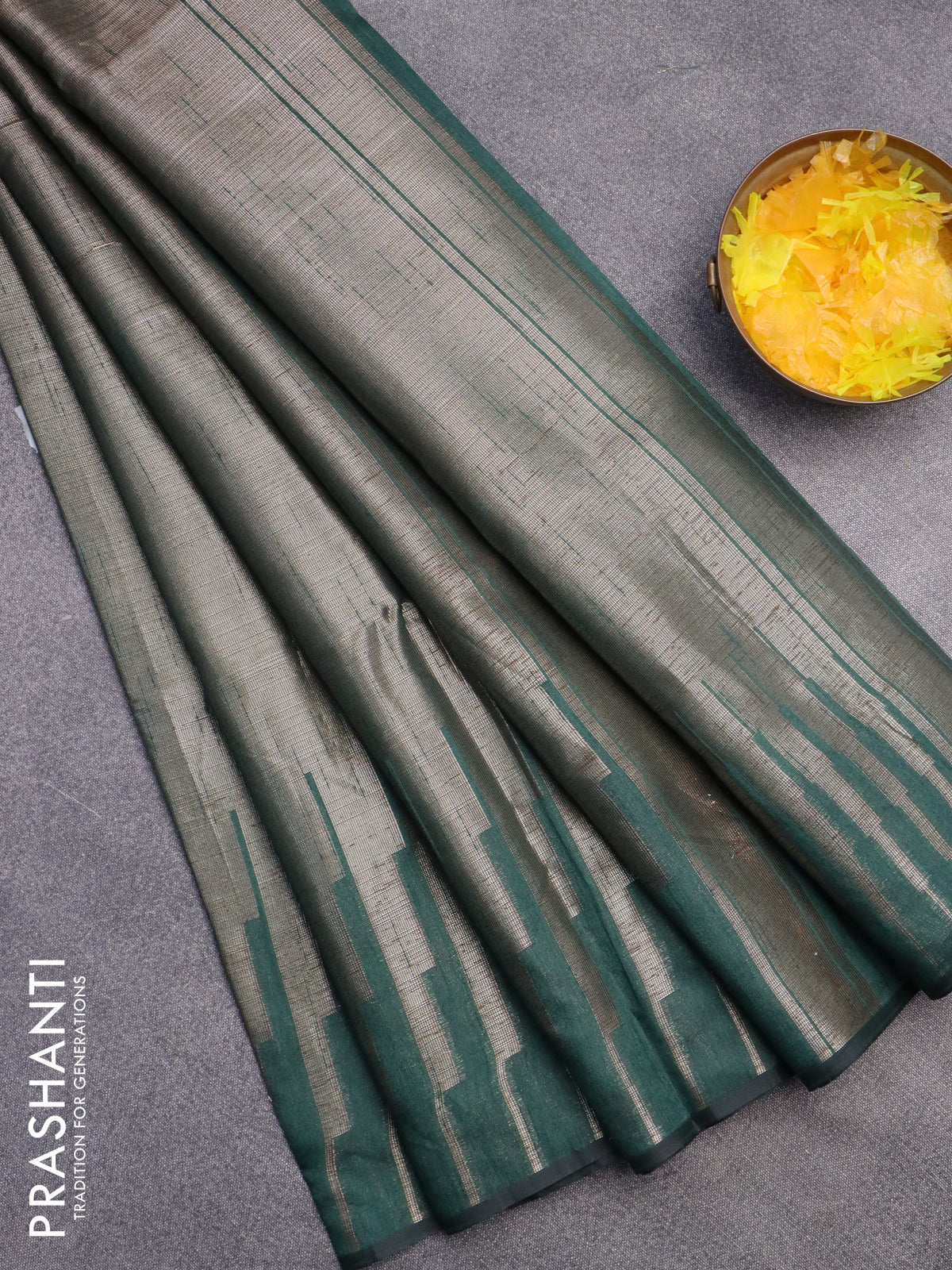 Banarasi matka tissue saree green with plain body and long temple design zari woven border